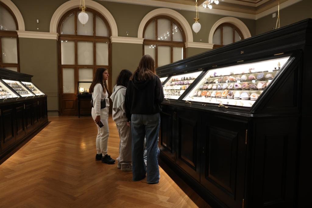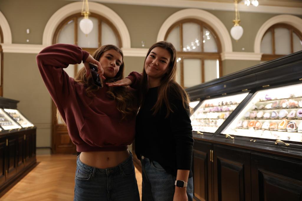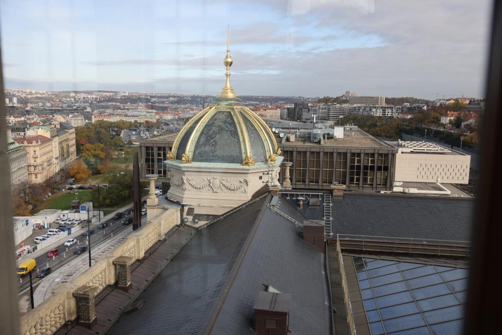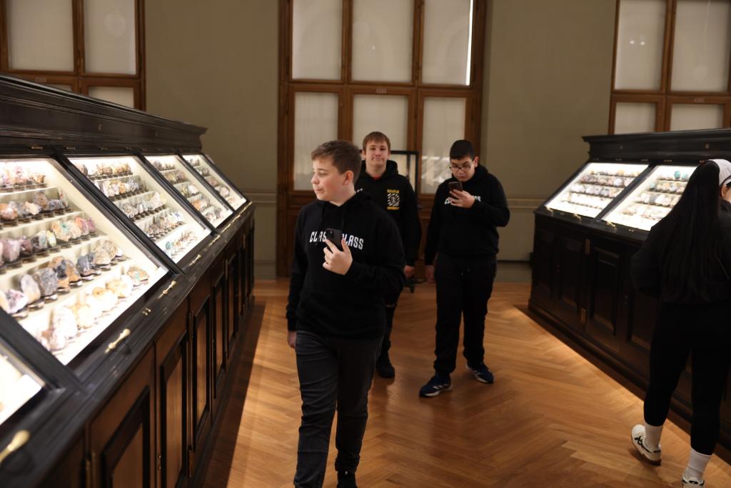 V úterý 4. listopadu jsme zamířili do našeho hlavního města a cílem se nám protentokráte stalo před časem zrekonstruované Národní muzeum. Praha nás přivítala obligátní dopravní zácpou, ale to nám příliš nevadilo, protože vstup do muzea nebyl ničím omezen. Okolo desáté hodiny se již žáci pohybovali po sálech historické budovy, aby se seznámili s jejími exponáty. Návštěvu měli zpestřenou o zadání z přírodopisu, kde jim paní učitelka zadala úkol vyfotit dle určených kritérií některé z nerostů. A tak není divu, že v sálu minerálů, strávila devítka času nejvíce. Pak se již ale všichni rozprchli i do dalších oddělení a někteří i do tamějšího bistra. A nevynechali jsme ani výstup do skleněné kupole, odkud byl, i díky nádhernému počasí, báječný výhled na Václavské náměstí a značnou část Prahy.
