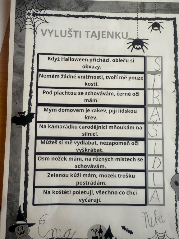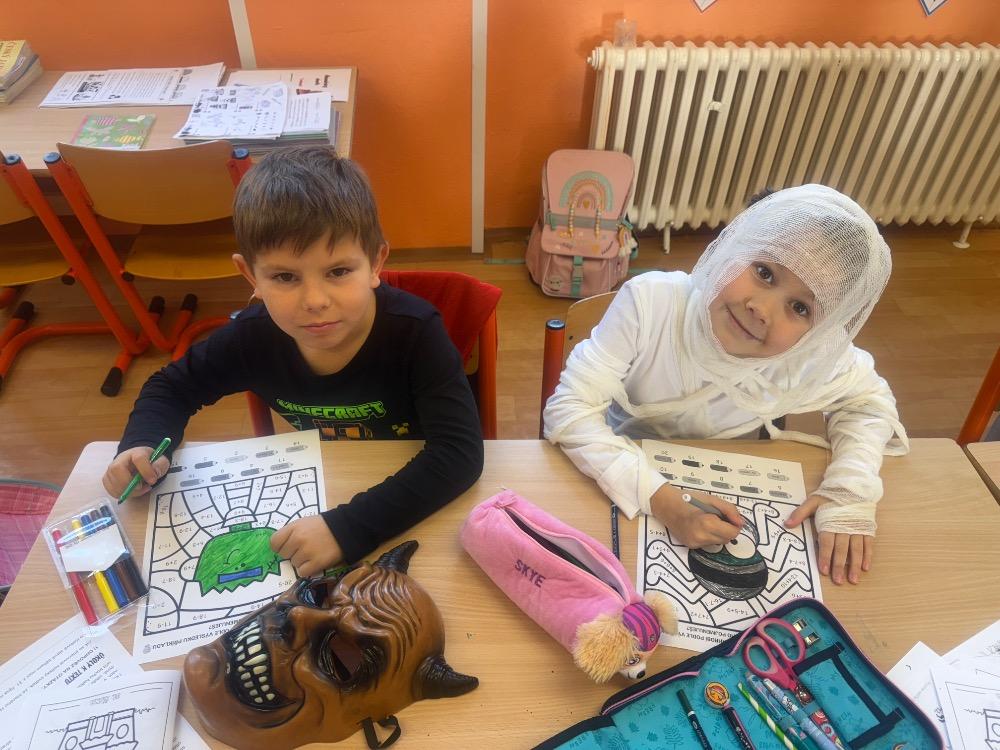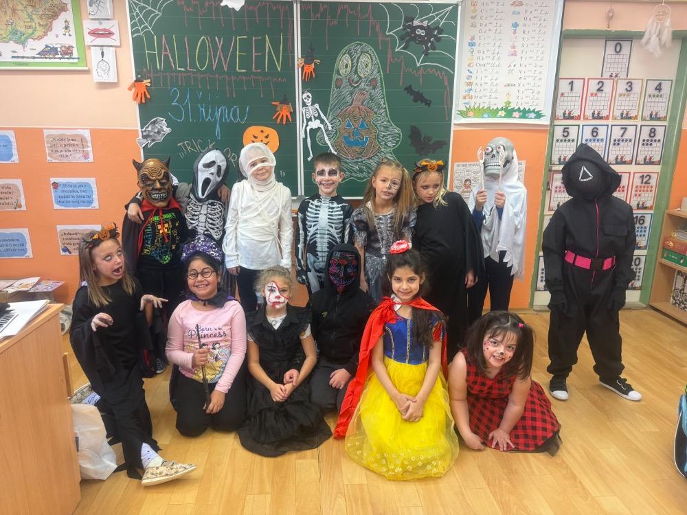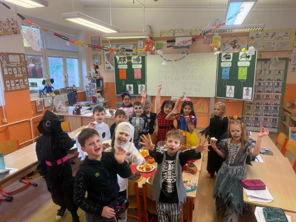 V naší třídě 2. A jsme si 31. října užili parádní halloweenský den! Celá třída se proměnila v pestrý rej masek – po lavicích poletovali čarodějnice, duchové i nejrůznější strašidýlka.