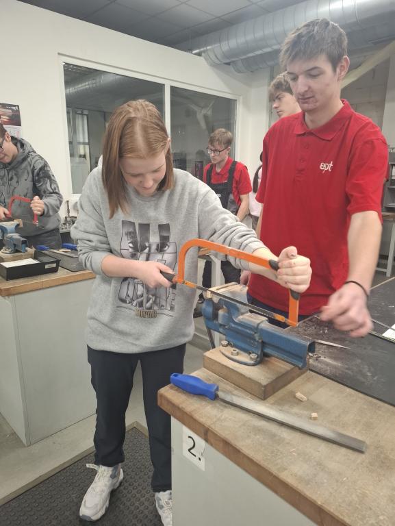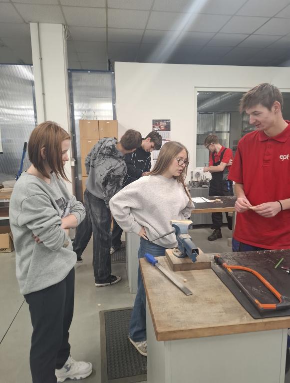 Ve středu 19. 11. 2025 navštívili žáci 8. ročníku firmu ept connector, s. r. o. Pod vedením studentů střední školy zde pracovali se dřevem a vyzkoušeli si různé činnosti v rámci pracovní výchovy.