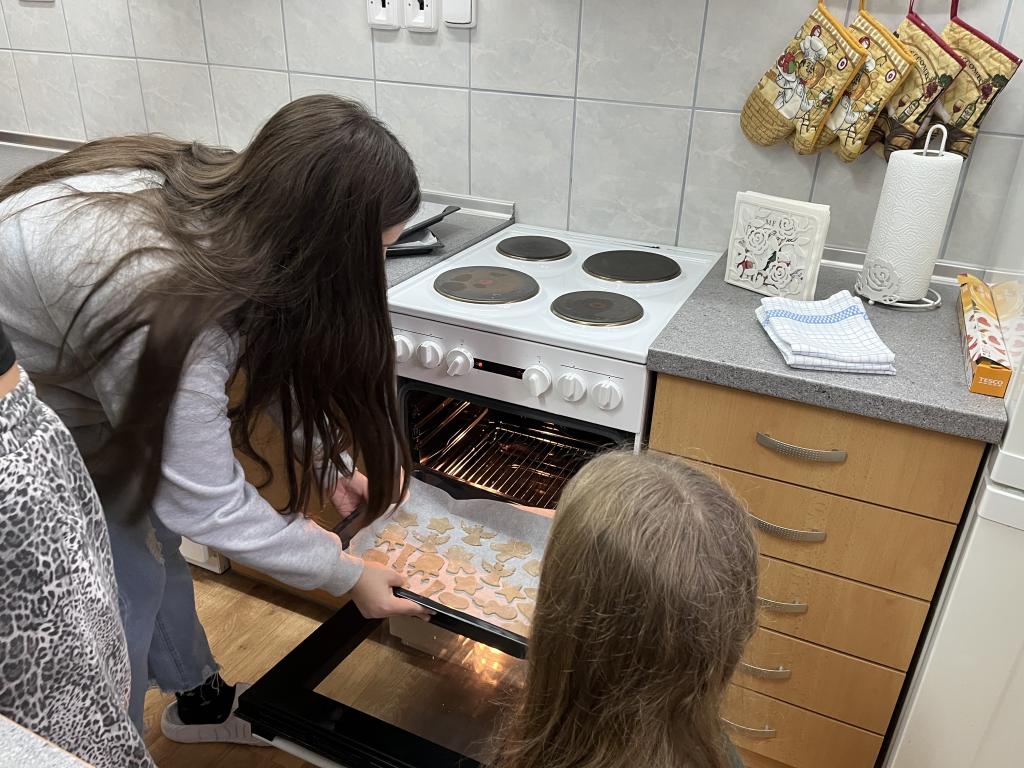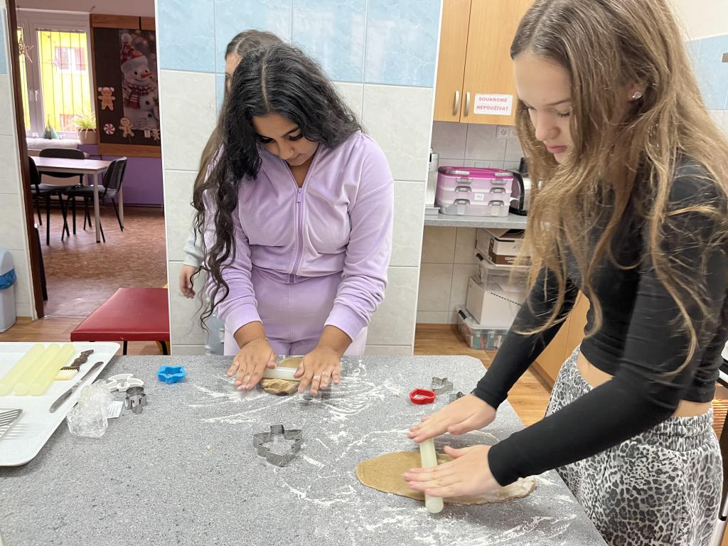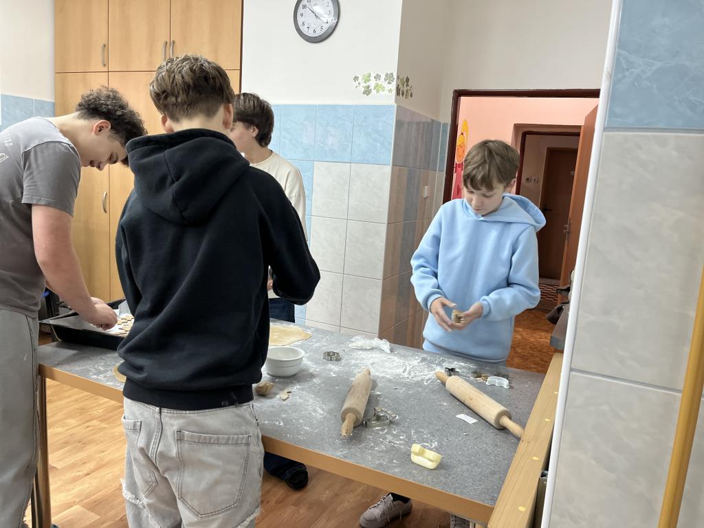 Vyrazili jsme do DDM provonět místní kuchyň. Pustili jsme se do pečení perníčků a brzy to vypadalo, že těsto mizí rychleji, než se stíhá vykrajovat. Některé perníčky byly ukázkové, jiné trochu originální… ale všechny chutnaly skvěle.