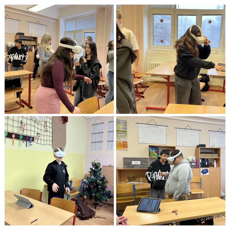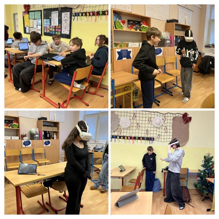 Potom se vrhli do virtuální reality, kde si vyzkoušeli různé profese - bezpečně bez rizika požárů, krvácení, zkratů a dalších překvapení, která by ve třídě úplně neprošla.