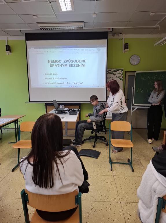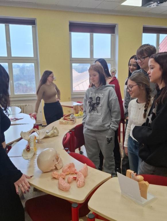 Ve středu 17. 12. 2025 jsme se vydali do Chebu na Střední zdravotnickou školu, kde si studenti a učitelé připravili velmi pestrý program pro žáky základních škol. Program jsme zahájili přednáškou o zdravém sezení, pokračovali jsme povídáním o poruchách příjmu potravy a o orgánech a jejich funkcích v lidském těle. Díky MBTI testu jsme se dozvěděli něco o našich osobnostech. Velmi přínosná byla také přednáška o závislostech na návykových látkách a vyzkoušeli jsme si poskytování první pomoci při úrazech i při dušení.
