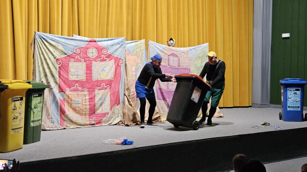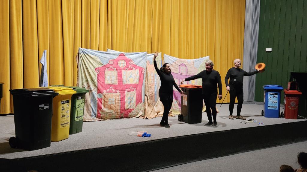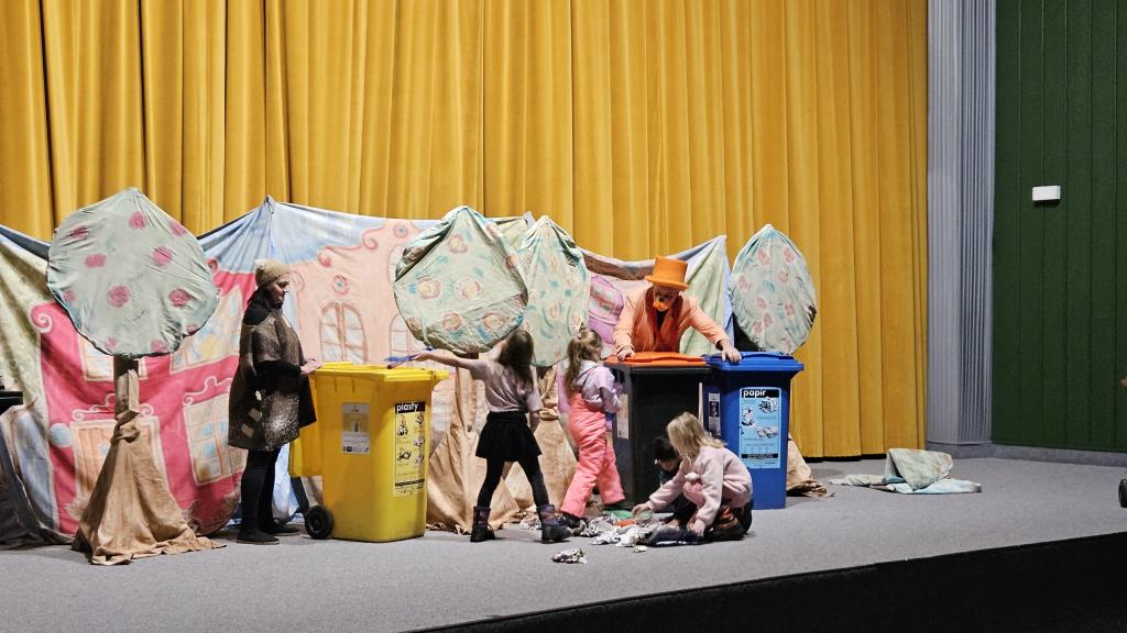 Velkým zážitkem pro děti byla možnost aktivně se zapojit do děje – některé z nich si mohly přímo na jevišti vyzkoušet třídění odpadu jako součást představení. Díky tomu si děti nejen odnesly nové znalosti, ale také silný osobní prožitek.