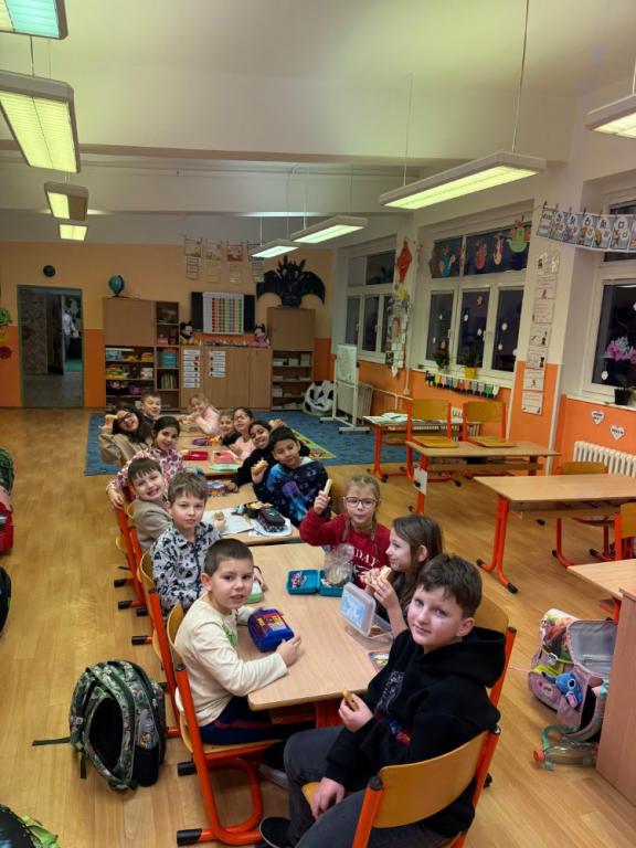 Každé pondělí se třída 2. A schází o půl hodiny dříve, než začíná vyučování. Tento společný čas jsme si velmi oblíbili a stal se už naší milou tradicí.