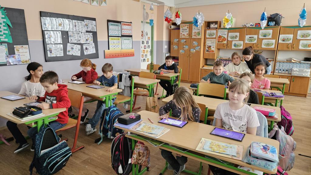 V dnešní hodině českého jazyka se žáci třídy 3. B věnovali procvičování a opakování vyjmenovaných slov po M, P a S. Výuka probíhala s využitím tabletů, se kterými už mají žáci zkušenosti z předchozích hodin, a mohli tak cíleně rozvíjet své digitální kompetence.