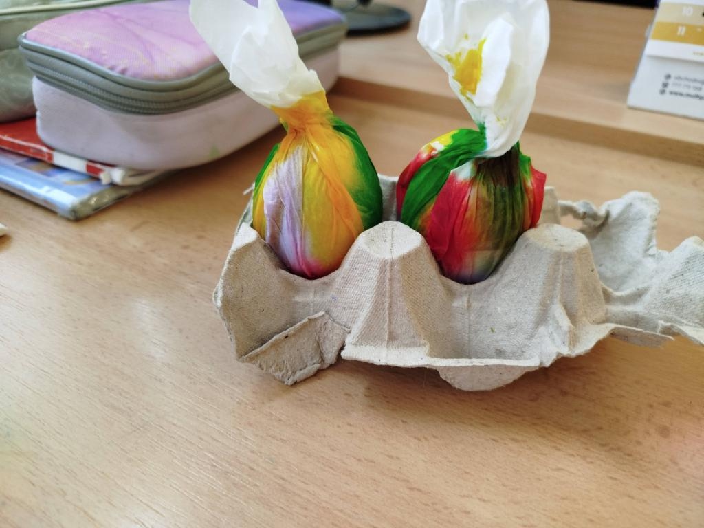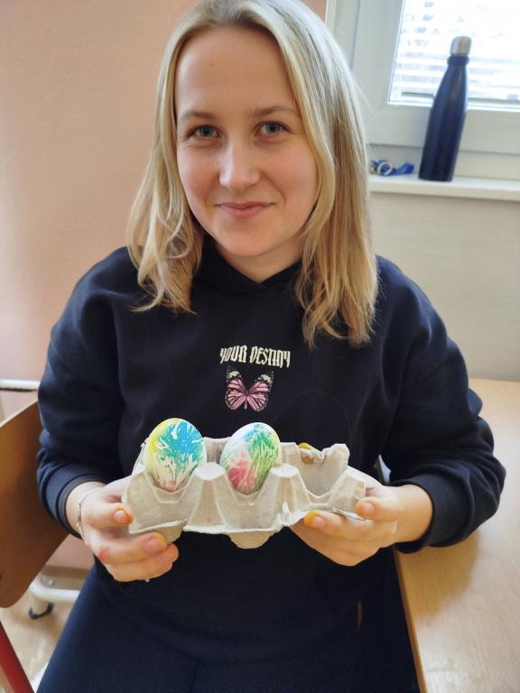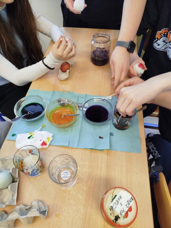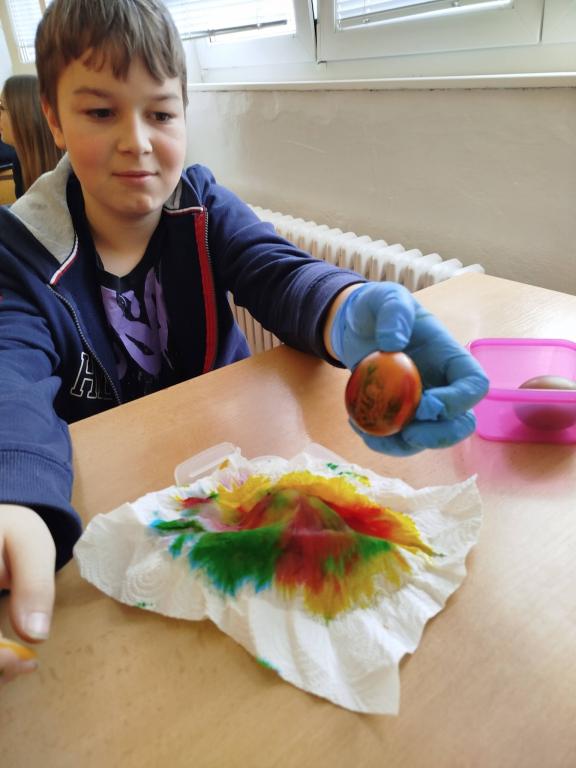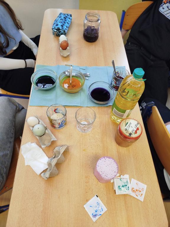 Tento týden jsme chemii vyměnili za velikonoční tvoření. Žáci 8. a 9. ročníků si vyzkoušeli barvení vajíček hned několika způsoby. Vedle přírodních výluhů z červeného zelí, kurkumy a papriky jsme využili i potravinářská barviva pro klasické hnědé odstíny. Velký úspěch měla technika zdobení pomocí kosmetických ubrousků, kde žáci naplno projevili svou fantazii, i letošní hit – barvení pomocí kypřicího prášku a oleje. Jak se jim díla podařila, se můžete podívat v naší fotogalerii. Všechna vajíčka jsou prostě parádní!
