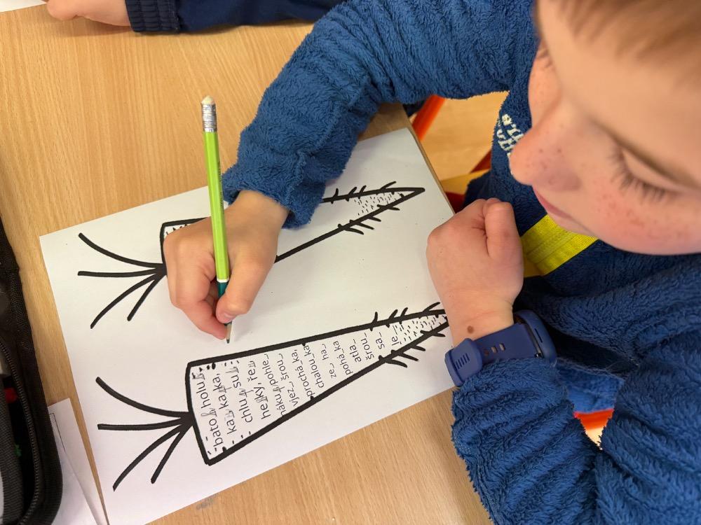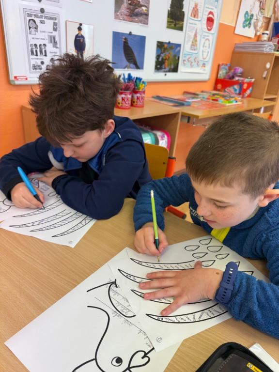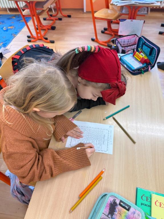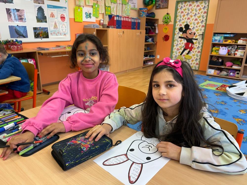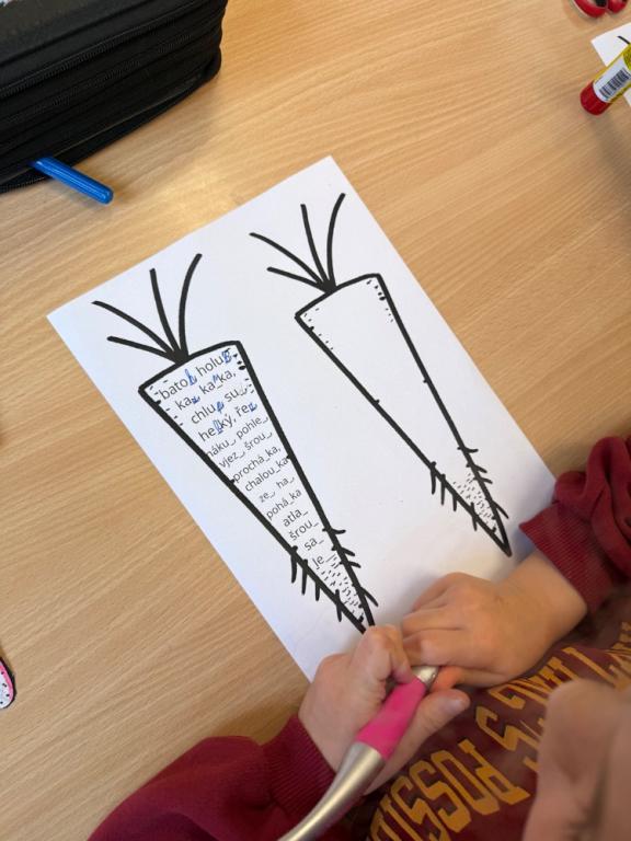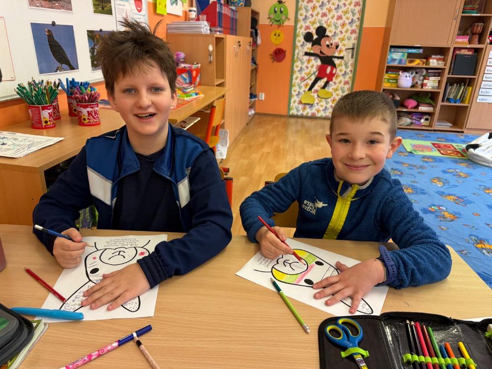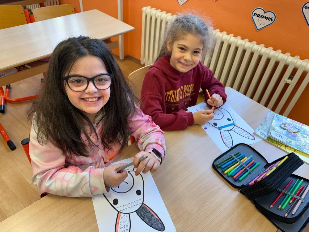 Poté jsme se pustili do tvoření. Při výrobě velikonočního zajíčka a kohouta si děti hravou formou zopakovaly učivo z českého jazyka i matematiky. Nechyběla ani oblíbená aktivita – běhací diktát, který děti velmi baví a při kterém si procvičují nejen pravopis, ale i spolupráci a pohyb.