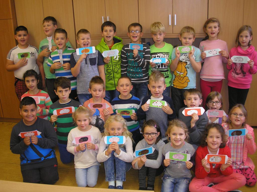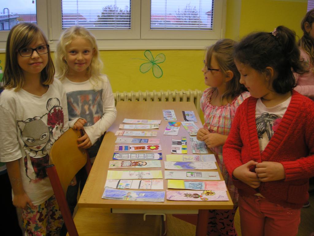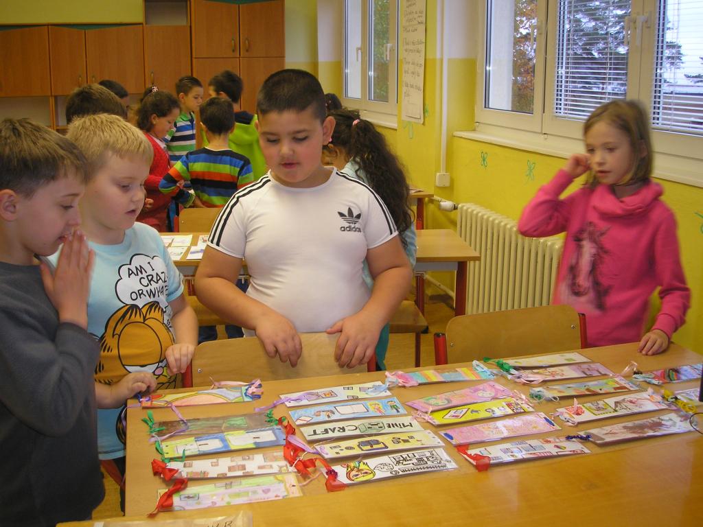 S velký elánem a chutí jsme se společně pustili do vyrábění. Hotové záložky před odesláním do slovenské školy, jsme si mohli prohlédnout záložky i z jiných tříd, které se společně s námi do projektu zapojili. Poté jsme čekali na záložky ze Slovenska. Nakonec jsme se všichni dočkali. Každý žák obdržel záložku ze Slovenska.
