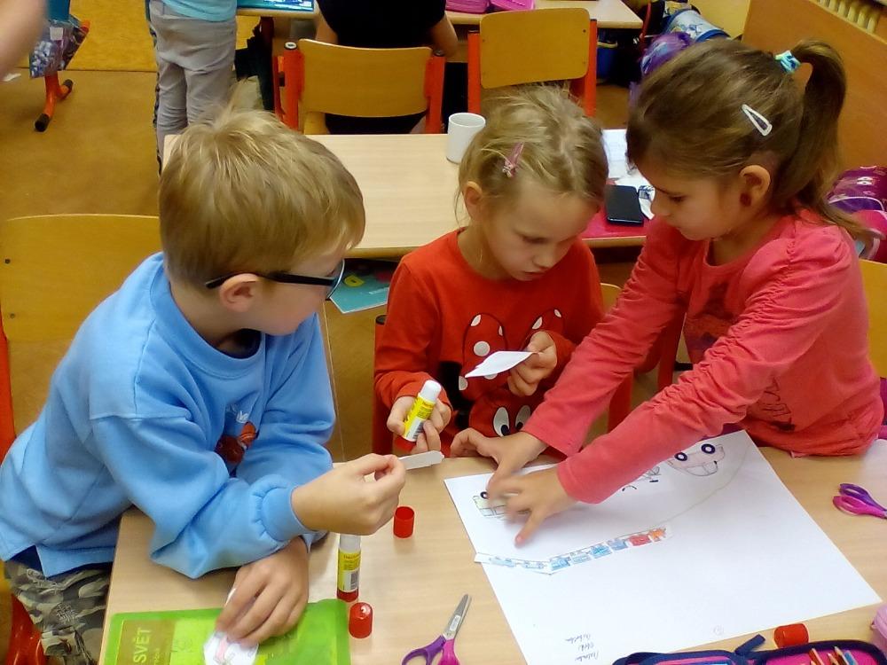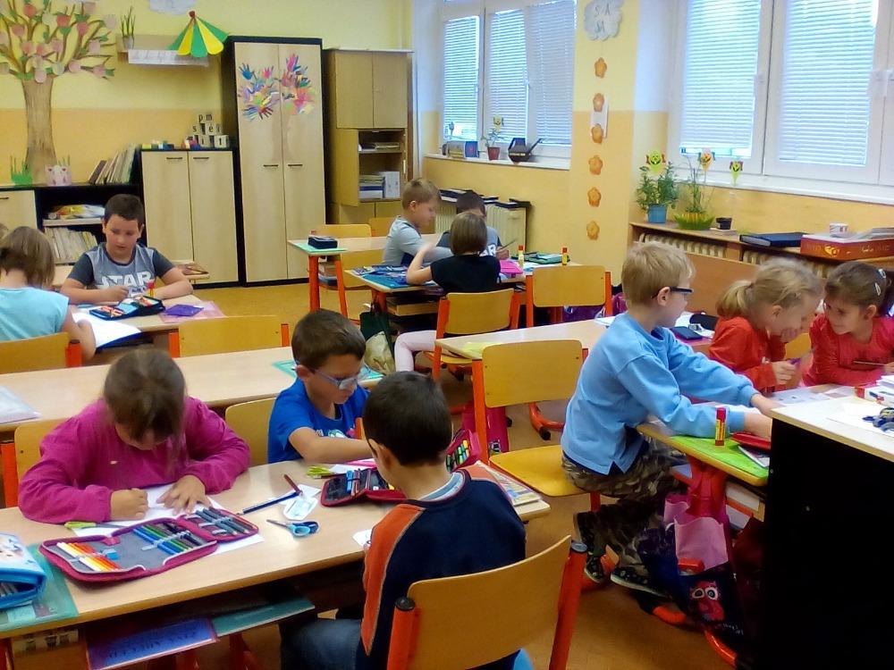 Školní rok ubíhá a přináší stále něco nového. Tentokrát děti čekalo skupinové vyučování, ještě se s takovou spoluprací nesetkaly. Na začátku jsme si řekli jaká pravidla se musí dodržovat, že ve skupině si děti navzájem pomáhají, že si mezi sebou musí práci rozdělit tak, aby se každý zapojil a mohl se pochlubit svým podílem na dokončené práci.Musím třídu velice pochválit, svůj úkol splnily všechny skupiny na výtečnou. Všem se práce povedla, děti si zodpovědně rozdělily role a spolupracovaly přesně podle pravidel. Hotové práce si děti vystavují na šatně.