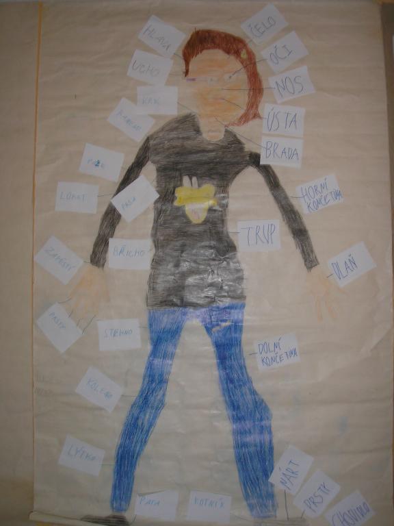 Ve skupině každý zastupoval mnohé pozice, museli jsme se domluvit, kdo bude modelem (vybíral se ten nejmenší spolužák), poté jsme společně vybarvili a popsali jednotlivé části těla. Přpadné potíže jsm spolu museli řešit, spolupracovat a umět spolu komunikovat.