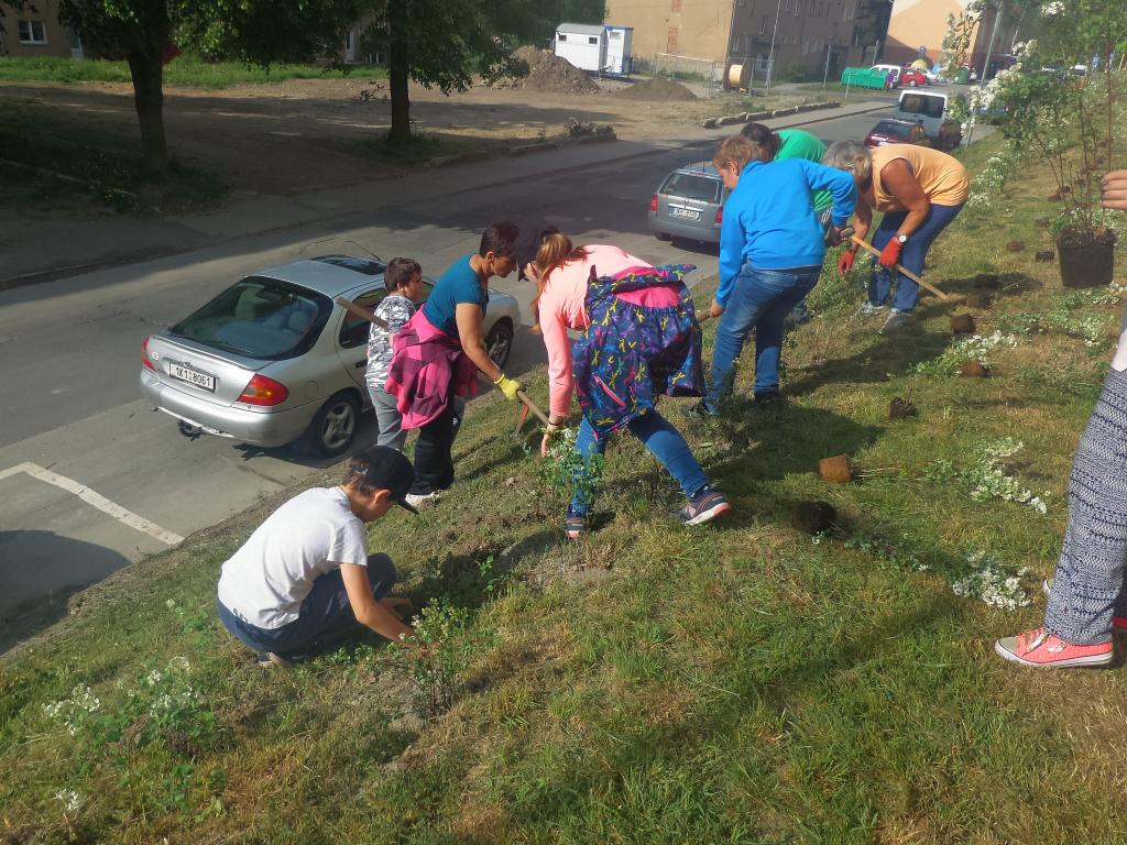 Sázení keřů v ulici Karla Čapka