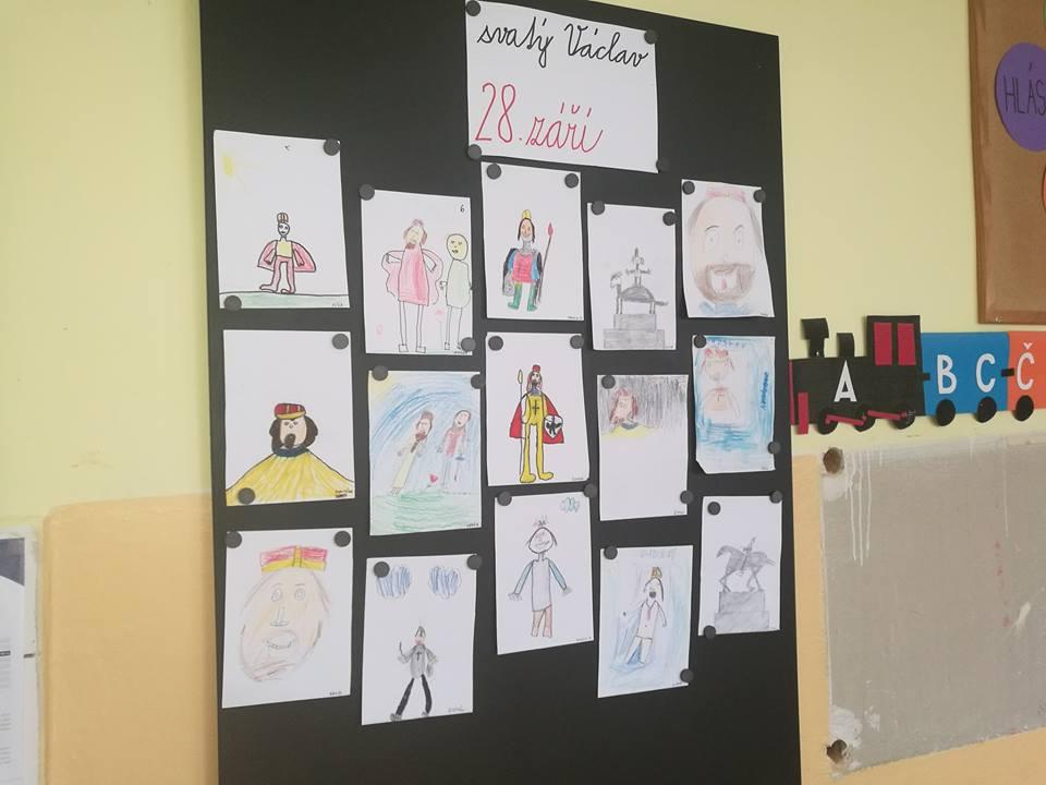 Minulý týden jsme si ve čtvrtek povídali o tom, že je 28.září svátek. Nejenže máme radost z toho, že máme volno, ale děti se dozvěděly, že je to díky svatému Václavovi, který je patronem České země. Podívali jsme se na krátkou pověst o svatém Václavu, a protože to děti hodně zaujalo, nakreslili jsme si k této pověsti také obrázky. Dětem se obrázky natolik podařily, že jsem se rozhodla, že stojí za zveřejnění.