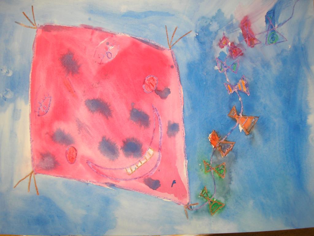 V hodinách českého jazyka a literatury jsme se naučili kreslit draky dle říkanky. Poté jsme si v hodinách výtvarné výchovy vyzkoušeli takového veselého draka namalovat.