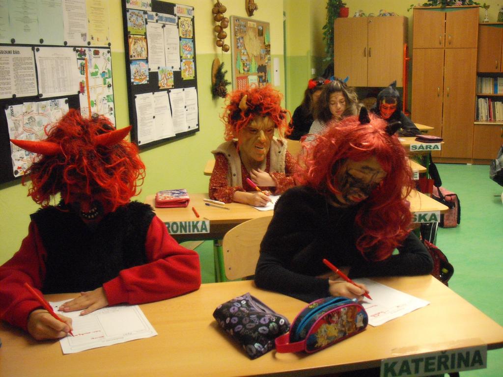 Dnes na Mikuláše jsme měli čertovskou školu. První hodinu jsme dělali čertovský testík z matematiky, druhou a třetí hodinu jsme hráli různé hry, čtvrtou jsme měli čertovskou výtvarku.