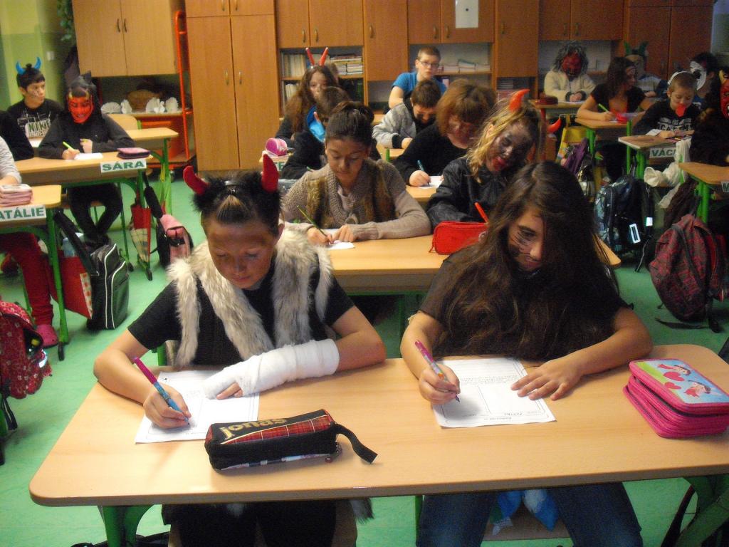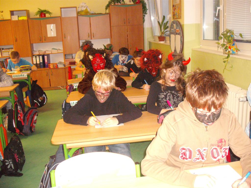 1.hodinu jsme psali pekelný matematický test o pekelných žertíkách.Taky jsme psali o sobě.