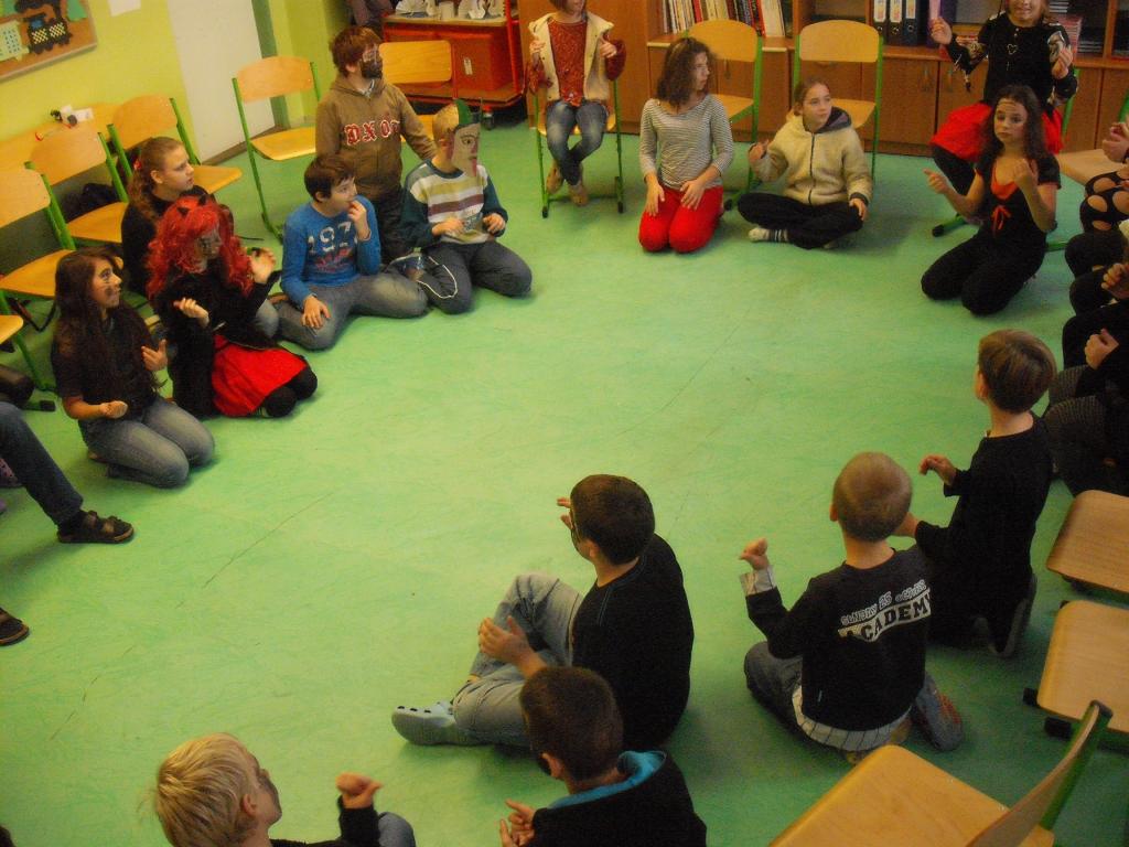 2.a 3. hodinu jsme hráli soutěže. Například páku, čerti z místa, kohoutí zápasy atd.