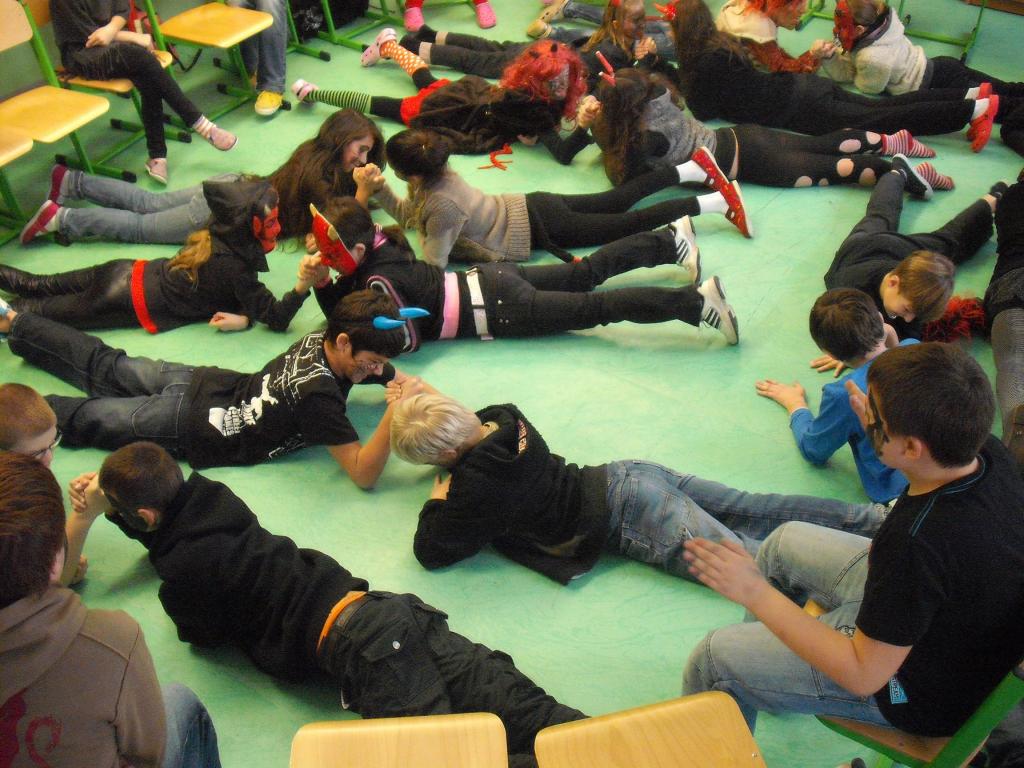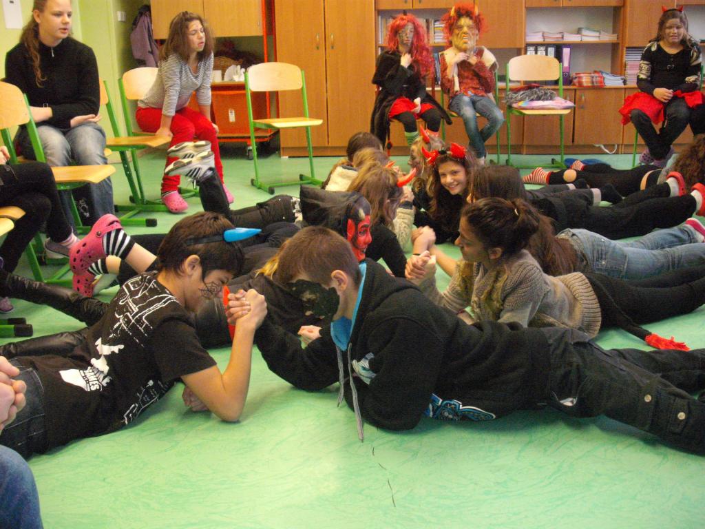 2.a 3.hodinu jsme dělali soutěže. Například páku, čerti z místa, kohoutí zápasy atd.