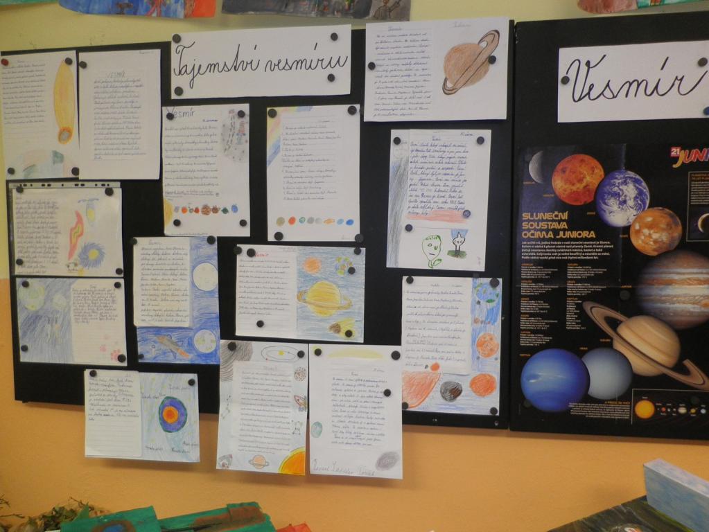 Čtvrtá třída opět pátrala po dalších tajemstvích vesmíru, který člověka neustále překvapuje a uvádí v úžas. S velkým zaujetím jsme vyhledávali mnoho informací. Každý měl možnost tyto znalosti využít ve svém vyprávění a mnoho žáků také vyjádřilo svůj názor na existenci života mimo naši planetu Zemi. Na chvíli se také čtvrťáci stali konstruktéry vesmírných korábů. Naplánována byla také vesmírná mise na Mars, do které byli vybráni ti nejlepší. Účastníci této mise to však neměli jednoduché, své znalosti i dovednosti museli prokázat v obtížném testu.