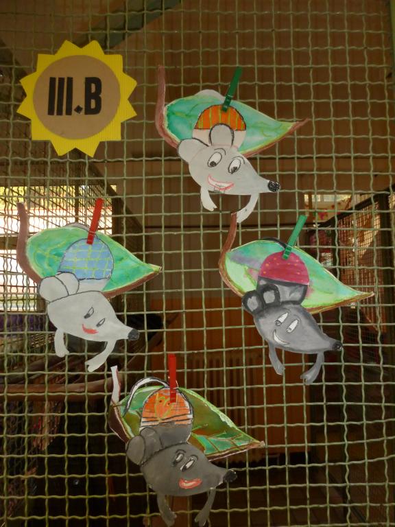 Na začátku školního roku jsme se rozhodli, že si vyzdobíme naše třídní dveře. Proto jsme si vyrobili během měsíce září v hodinách pracovní výchovy každý svoji roztomilou myšku s listem.