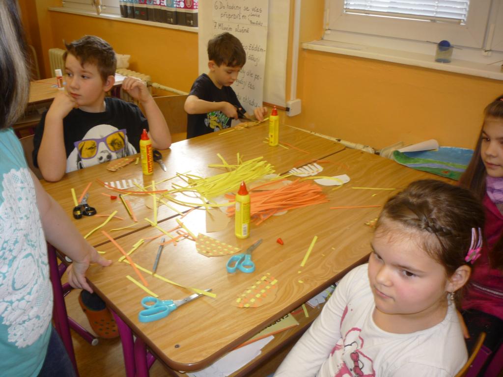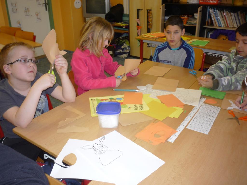 Ve středu, před velikonočními prázdninami jsme pracovali společně II. A a IV. A. Paní učitelky a paní asistentky si pro nás společně připravily několik námětů na zdobení vajíček, velikonoční přání a také jsme tvořili z keramické hlíny. Žáci druhých a čtvrtých tříd se rozdělily do skupin, aby si vzájemně mohli pomáhat. Ve skupinách se děti učily vzájemné spolupráci, komunikaci a toleranci.