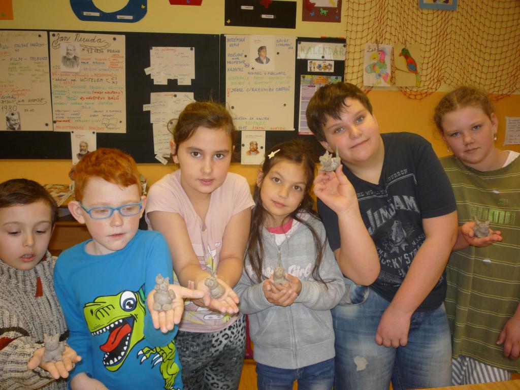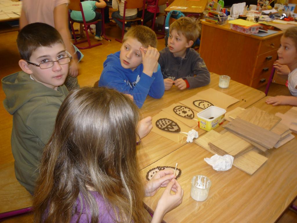 A jaké techniky si žáci vyzkoušeli? Zdobení vajíček voskem, omotávání bavlnkou, výrobu vajíčka z dýhy zdobené zrnkovou kávou. Vyrobili si velikonoční přání. Nejvíce děti bavila práce s keramickou hlínou pod vedením paní učitelky Mgr. Světlany Kellerové.