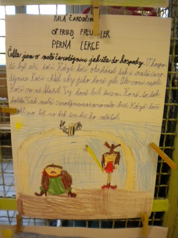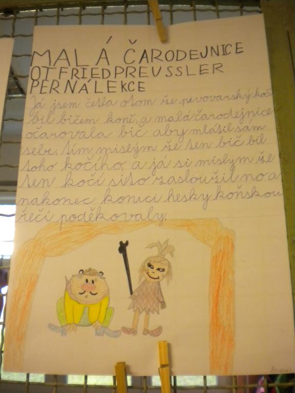 Na hodině Vv jsme se pustili s vervou a nadšením do další společné práce. Téma bylo: Ilustrace a příběh z knihy "Malá čarodějnice." Žáci měli přečtené dva příběhy a na základě přečteného textu se pokusili vytvořit svůj příběh, který dotvořili vlastní ilustrací z knihy. Všem žákům patří pochvala za pěkné a zdařilé práce.