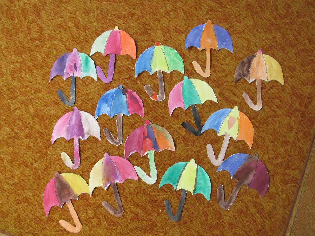 K básničce "Děštové kapičky", kterou si říkáme při rozcvičování prstíků před psaním, jsme si vyrobili deštníky.
