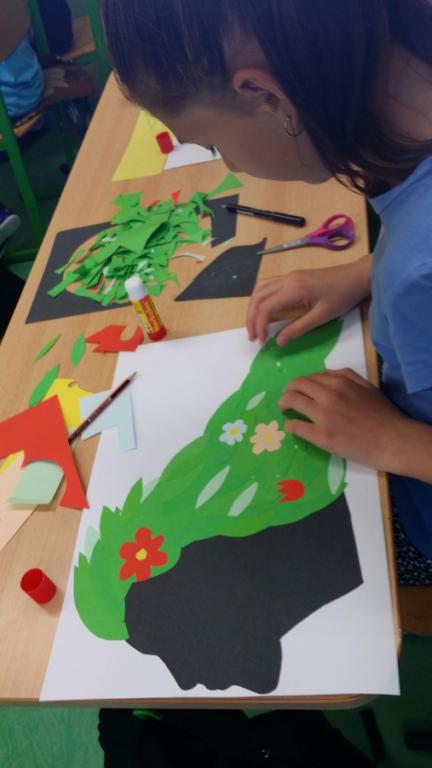 Na hodině VV jsme s dětmi tvořily obrázky na téma PANÍ JARO. Z barevných papírů stříhaly různé tvary lístků a kvítků a tvořily dle své fantazie paní Jaro. Práce to byla náročná, jako vždy se dětem podařila.