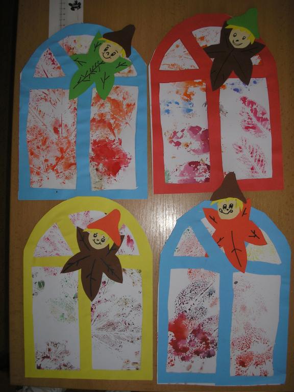 Výsledkem naší práce bylo podzimní okno s " panáčkem - podzimníčkem".