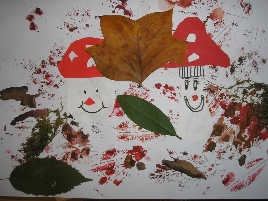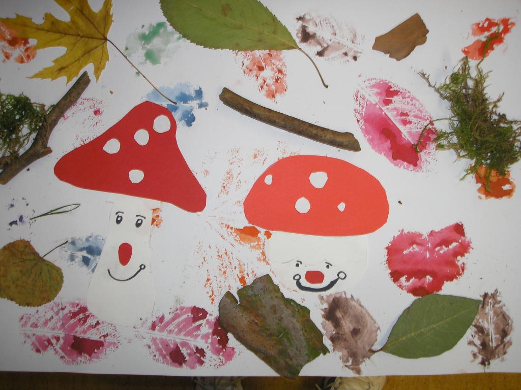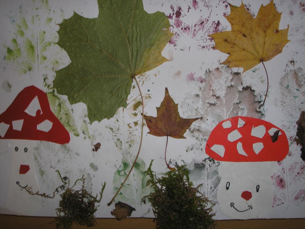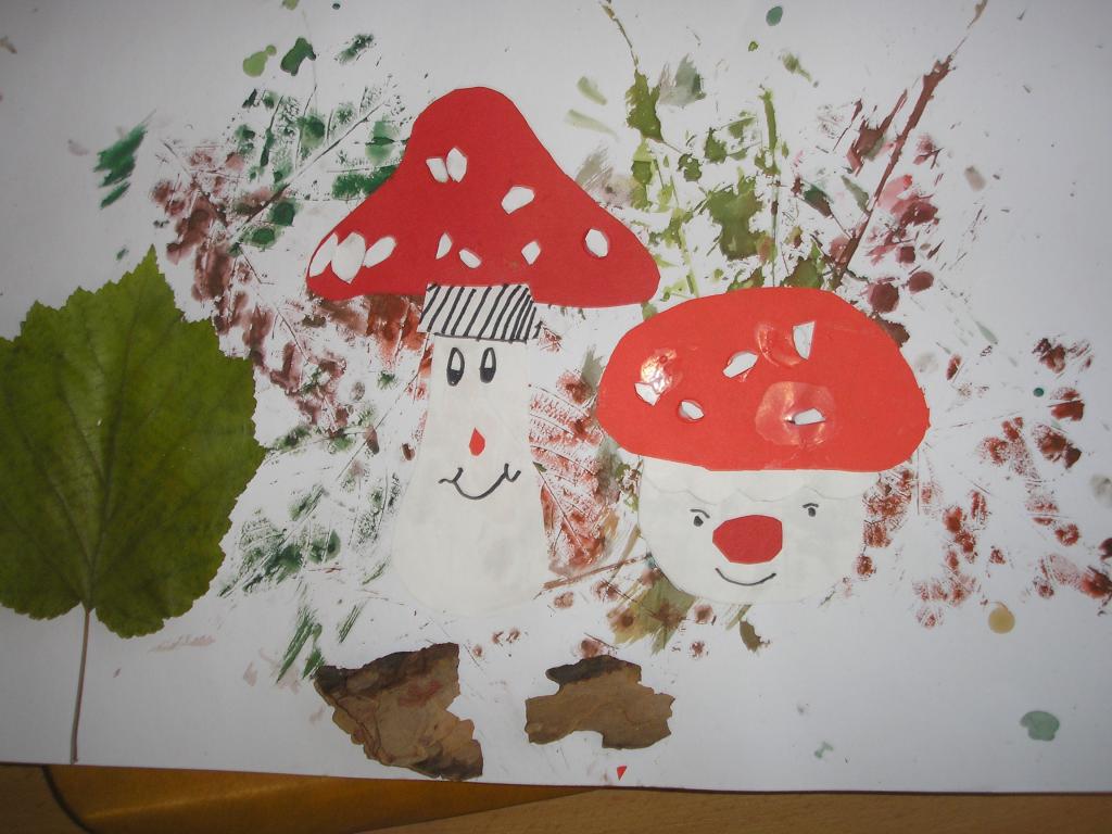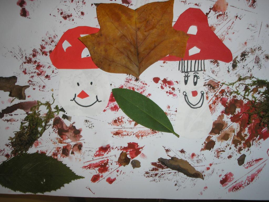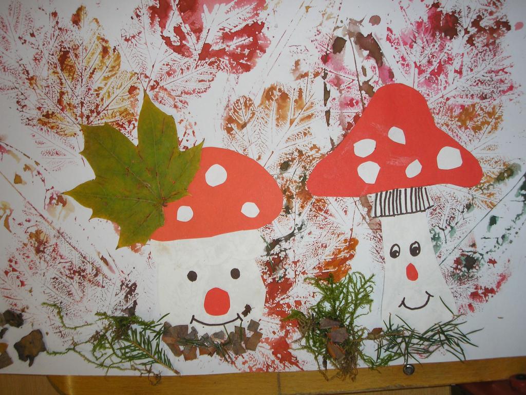 Podzimní inspiraci jsme opět využili v hodinách výtvarné výchovy. Tentokrát jsme si vytvořili koláž. Nejprve jsme otiskovali velikosti různých listů, poté jsme si dle šablony vyrobili muchomůrky červené a nakonec jsme využili přírodniny z lesa- vylisované listy, větvičky, mech, šišky apod. Tím jsme koláž dokončili.