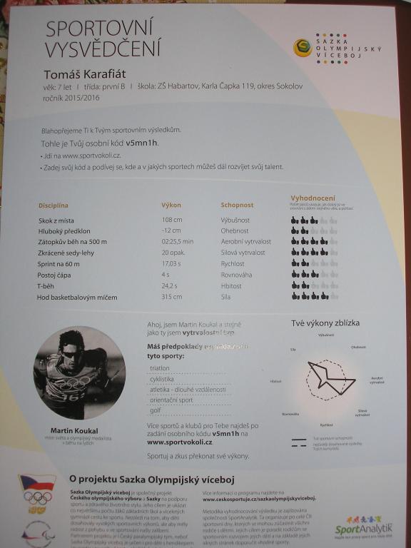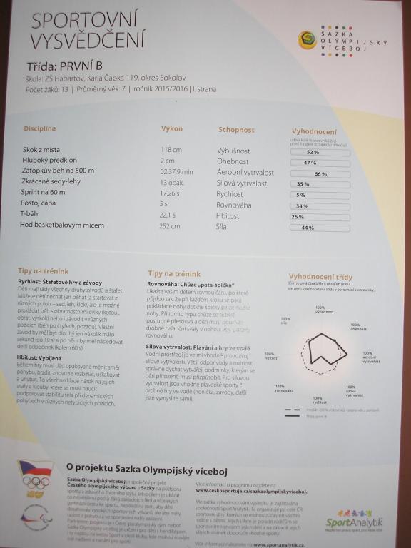 Celá třída obdržela sportovní vysvědčení, ve kterém jednotliví žáci měli své výsledky zaznamenány a vyhodnoceny.