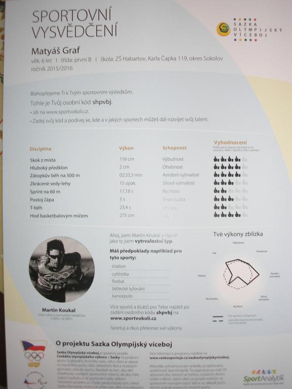 V letošním školním roce jsme se poprvé zúčastnili Olympijského víceboje. Naše škola obdržela bronzový certifikát a bronzovou medaili za splnění sportovních dispciplín.