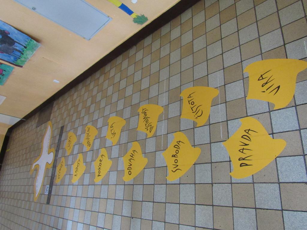 Naše škola se zapojila do vzdělávací kampaně „ Husovy stopy“ ve školách. Obdrželi jsme nalepovací letící husu s nápisem „600 let žije mezi námi“ a 12 stop obsahující 12 hodnot Jana Husa, které po sobě českému národu zanechal jako dědictví: VÍRA, PRAVDA, ČISTOTA, SVOBODA, DŮSTOJNOST, ODVAHA, ÚCTA, POKORA, ODPUŠTĚNÍ, RADOST, LÁSKA, VĚČNOST. Tato slova vyvolávají různé asociace, představy a emoce.
