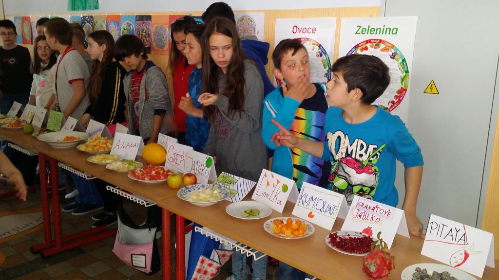 Dne 17.5. jsme díky projektu "Ovoce do škol" mohli uspořádat ochutnávku exotického ovoce pro žáky ze tříd I. stupně. Poprvé jsme se setkali s physalis, nashi, pitayou, kumquatem, ale i avokádem nebo granátovým jablkem. Přípravy celé ochutnávky se ujali žáci V.B. Za všechny mohu říci, že nás ochutnávání a poznávání nových chutí bavilo a byli jsme velice nadšeni.
