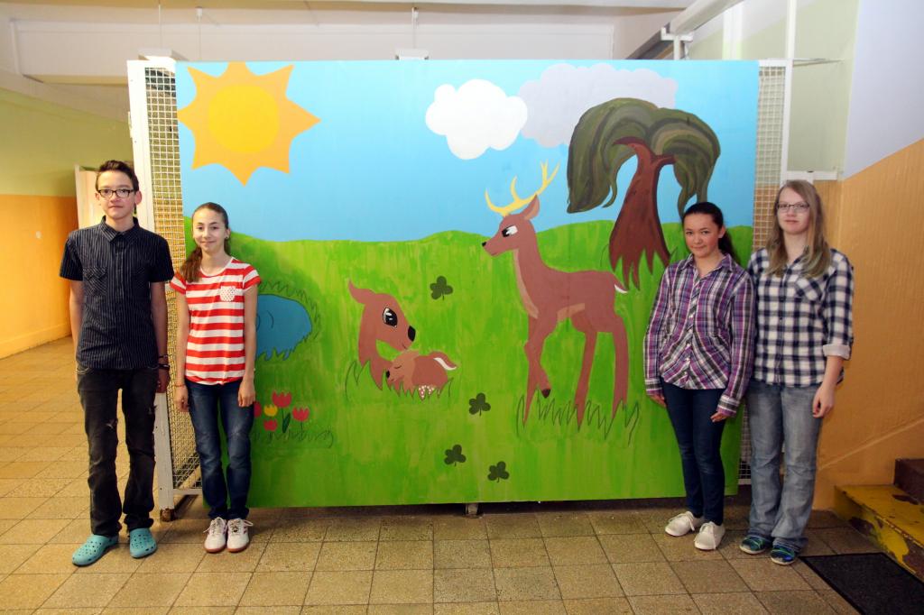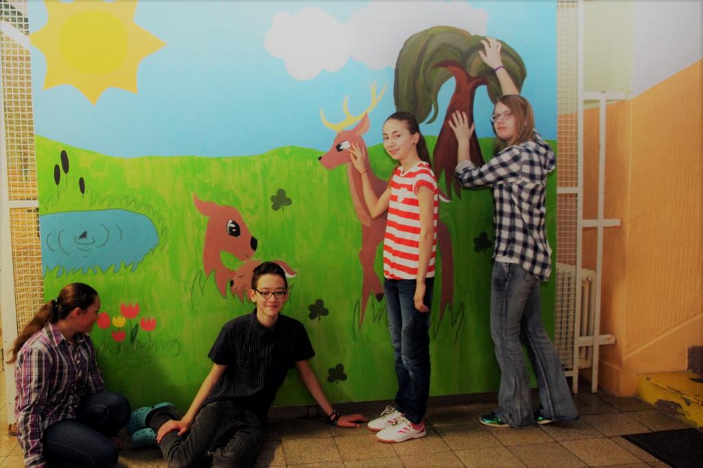 Rozhodli jsme se, že zelená stěna šaten potřebuje jarní výzdobu. Oslovila jsem velmi šikovné žáky třídy 7.A – Gabču Jiterskou, Kristýnku Čertíkovou, Biancu Zinu Kulhavou a Rosťu Čížka, zda mohou navrhnout obrázek s jarní tématikou. Kristýnka neváhala a po několika dnech přinesla návrh obrázku na bílém papíru formátu A4. A pak začala ta nejtěžší práce, přenést tento návrh na mnohem větší plochu šaten. Myslím si, že nás všechny práce moc bavila. Na výsledek se můžete podívat v naší galerii fotek.