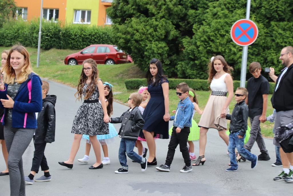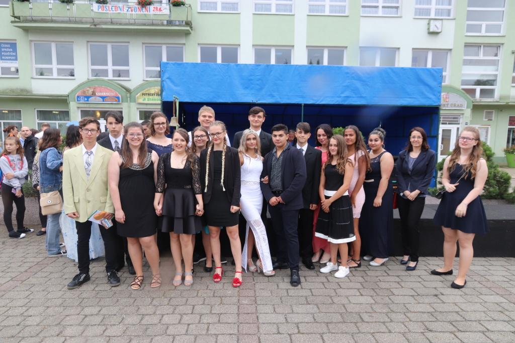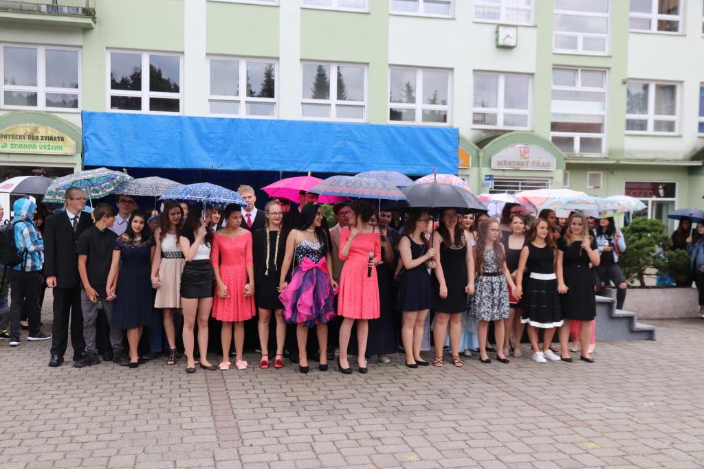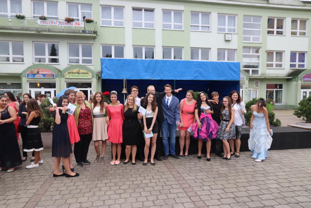 V závěru došlo na krásný proslov, plný milých slov a vzpomínání, a pak také na poděkování žáků nasměrované k jejich učitelům, které bylo zhmotněné do podoby nádherné rudé růže. Starobylý zvon zazněl naposledy a akce tím byla u konce. Fotografování, objímání, stisky rukou a loučení však trvalo ještě dlouhé minuty. Všichni vycházející žáci a také jejich rodiče si rázem uvědomili to, že něco dost podstatného pro ně v tento okamžik skončilo, a tak došlo i na slzy, kterým se mnozí neubránili. Za dva měsíce se z deváťáků stanou středoškoláci a bude to pro ně nový začátek, tak jim společně popřejme to, ať do něj vykročí tou správnou nohou, která je dovede ke kýženému cíli.
