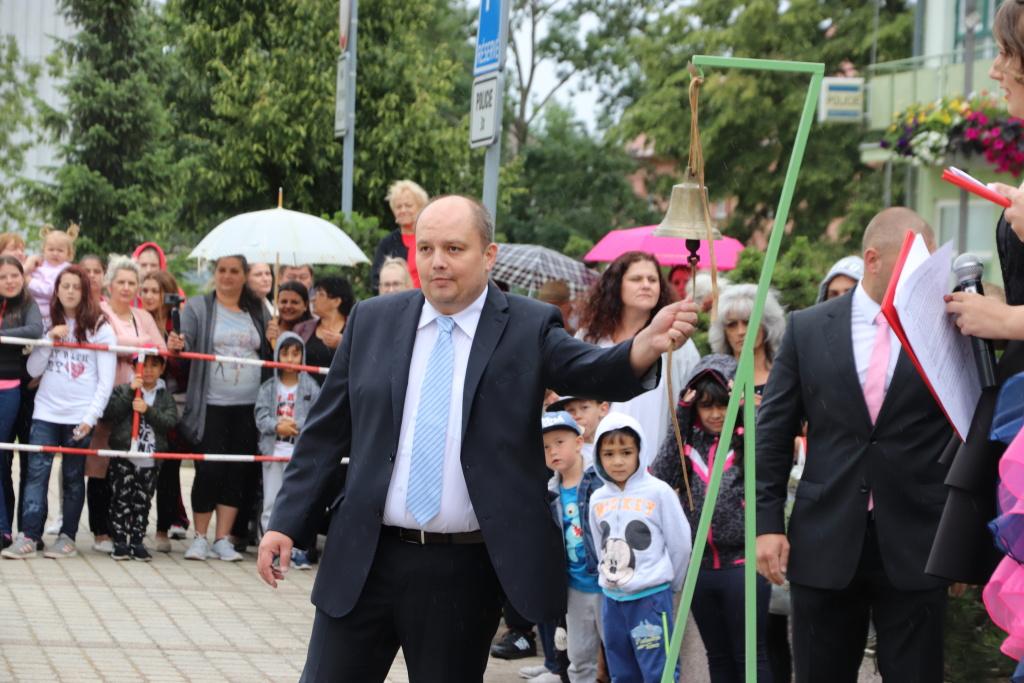 Obě dívky všechny přivítaly a v souladu s novým nařízením ukrývajícím se pod čtyřmi písmeny GDPR upozornili všechny na fakt, že z akce je pořizován filmový záznam a fotografie. Pak již následovalo první zvonění, o které se postaral ředitel ZŠ Mgr. Václav Riedl. Ten byl následně spolu se starostou města Habartova panem Ing. Petrem Janurou pozván na pódium, aby pronesli krátké proslovy. Vše se v nich hlavně točilo okolo poděkování a přání toho, aby se všem v jejich nových působištích vedlo co nejlépe.