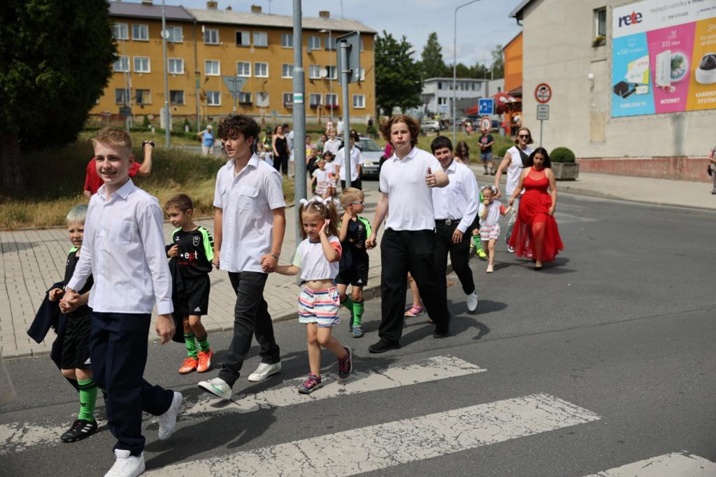Poté se do hlavní role již dostaly děti se svými pečlivě secvičenými výstupy. Vyhrazený prostor doslova hýřil pohybem a barvami a každý z capartů i adolescentů zaslouží za odvedené výkony velikou pochvalu. 9. A se ke svému tanci inspirovala muzikálem Rebelové, po ní se předškoláci z MŠ Okružní svlékli do trenek a předvedli, jakou vášní je pro ně fotbal. Jejich souputníci z MŠ Duhové nám zazpívali a zatančili na téma, jaké barvy má vlastně duha. I přípravná třída přispěla svou troškou do mlýna, po recitaci básničky následoval tanec na motivy písně Pátá. Blok vystoupení pak uzavřela 9. B, která nám prostřednictvím písně Michala Davida prozradila, jaký vztah má k loučení.
