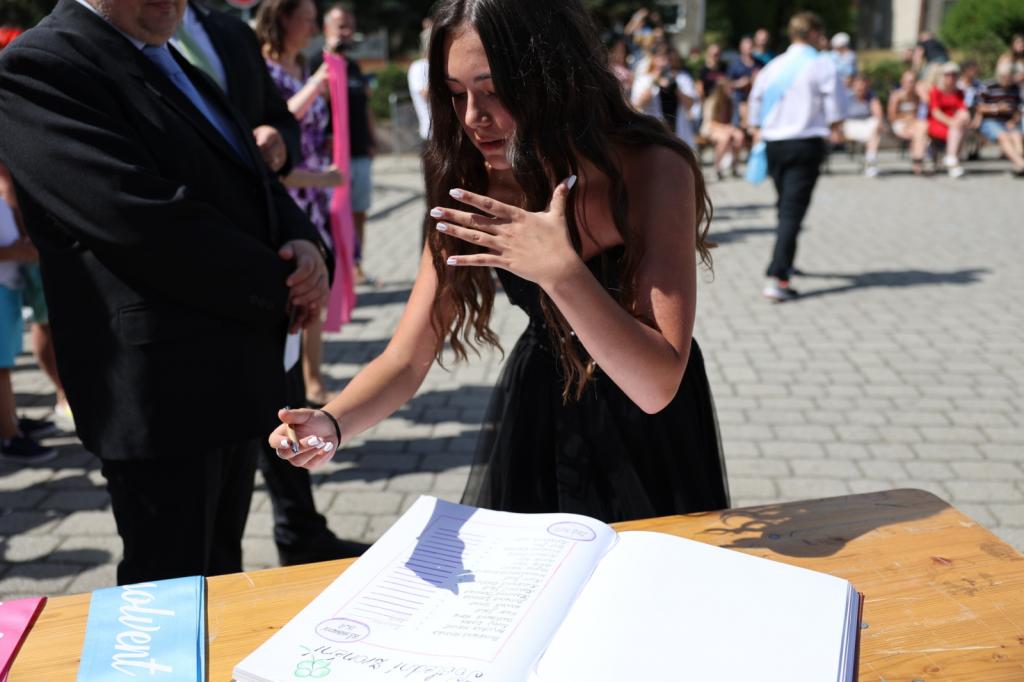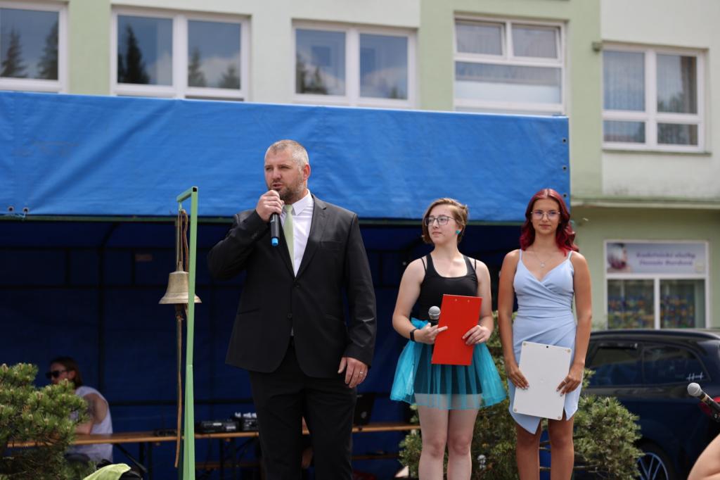 Obě devítky však ještě čekalo několik dalších bodů. Tím prvním byl slavnostní zápis do pamětní knihy města a následné převzetí dárků z rukou starosty, ředitele a třídních učitelů. Za další se deváťáci prostřednictvím proslovů loučili se svými školními léty. Po skončení proslovu došlo na poděkování přítomným učitelům, pro které si deváťáci taktéž nachystali malý dárek.