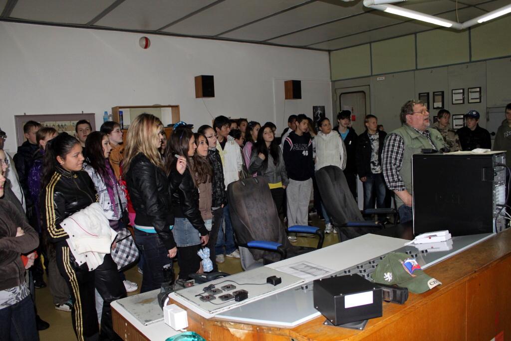 Asi padesátičlenná skupina postupně prošla celou cestou, kterou voda v úpravně podstupuje. Zastavili jsme se ve velíně, kde nám byl objasněn celý chod zařízení. V dnešní době je již plně monitorovaný a řízeny prostřednictvím všudypřítomných počítačů. Systém sleduje odkud a v jakém množství se voda odebírá z nádrže, jaký je její průtok a dále vydává i povely l přidávání jednotlivých chemických přísad. Dává taktéž podněty k přesunu vody do jednotlivých sekcí. Celou úpravu tak v podstatě obsáhne jeden člověk, který má k ruce několik údržbářů a elektrikářů.