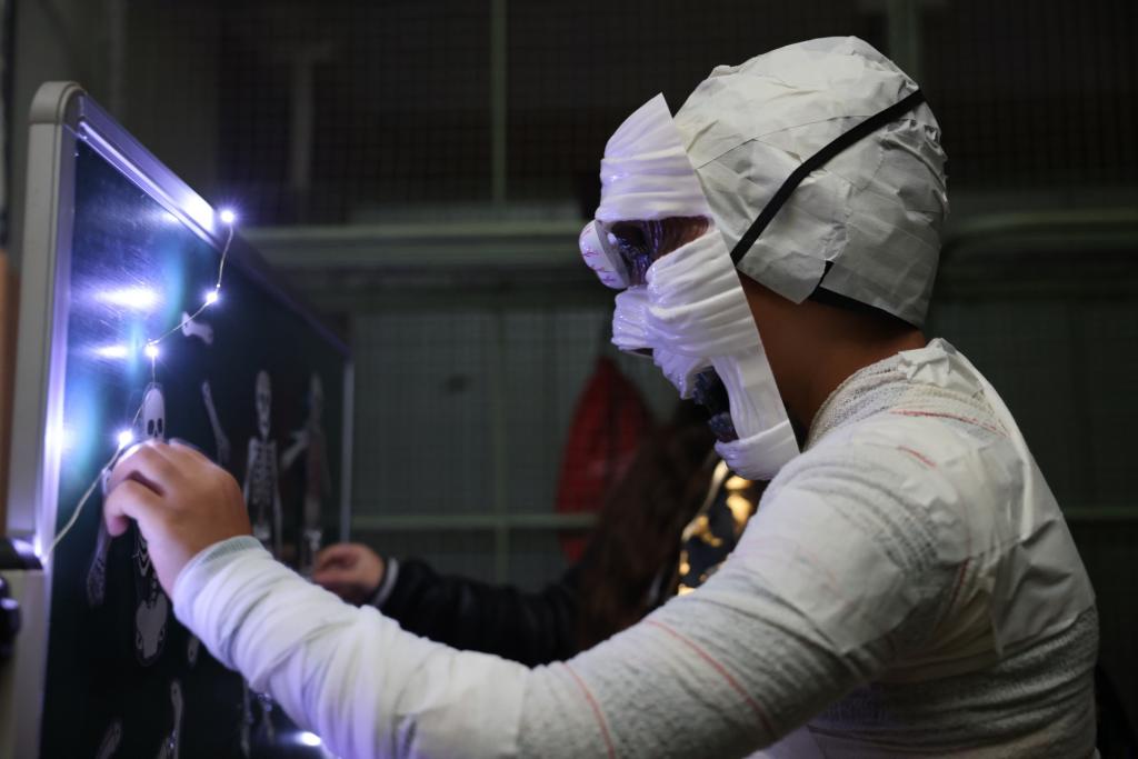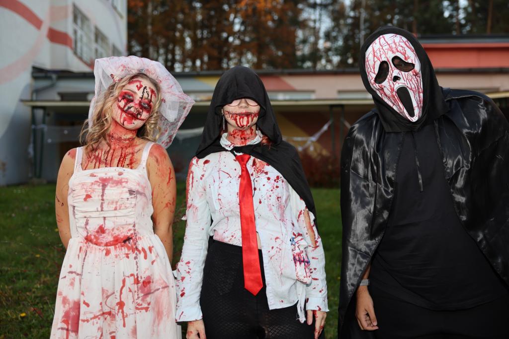 V pátek 25. října se na naší škole uskutečnila již poněkolikáté v řadě Halloweenská stezka. Tu si pro žáky prvního stupně připravili pedagogové školy za pomoci několika žáků druhého stupně. Projít stezku a splnit několik zapeklitých úkolů trvalo asi dvacet minut, ale přípravy na tematickou výzdobu, vytváření kostýmů a vymýšlení náplně stanovišť zabralo několik dnů. Na stezku se během více jak tří pátečních večerních hodin vydalo na sto padesát prvostupňáků, kteří nezřídka museli překonat sami sebe. Někteří se drželi rodičů jako klíště, jiní byli o něco odvážnější. Ti starší, čtvrťáci a páťáci, již do potemnělé budovy naplněné děsivými zvuky, mlhou a nevšedními bytostmi vyráželi již bez dospělých, ale za to ve dvojici či trojici. Jestli se nepletu, tak jsem dokonce potkal i jednu pětici. Co chvíli se chodbami rozléhaly výkřiky a lekání následovalo jedno za druhým. Pokud jsme však narazili na jedince slabší letory, režim „strašení“ byl operativně předem upraven. Nutno podotknout, že nakonec se všichni propracovali na závěr stezky bez znatelné úhony a odměnou za to jim byl malý balíček. Přes prožité lekance a možná i nějaký ten intenzivnější strach se na dětských tvářích přeci jen usídlil úsměv, což bylo znamením, že akce měla úspěch. Když mezi devátou a desátou hodinou večerní zazněly poslední děsivé zvuky a poslední nebojsa opustil brány školního areálu, škola se vrátila opět do běžného režimu. Světla se naplno rozsvítila a všichni aktéři se chopili zevrubného úklidu, který dokončí po víkendu paní uklízečky. Všem, kteří přiložili ruku k dílu, ať již při vyrábění či při samotné realizaci stezky se sluší náležitě poděkovat. A těm nejmenším popřejme, ať se ve svém životě bojí vždy jen takto řízeně a prvoplánovitě. A za rok snad zase pod dohledem dýní a kostlivců na viděnou.