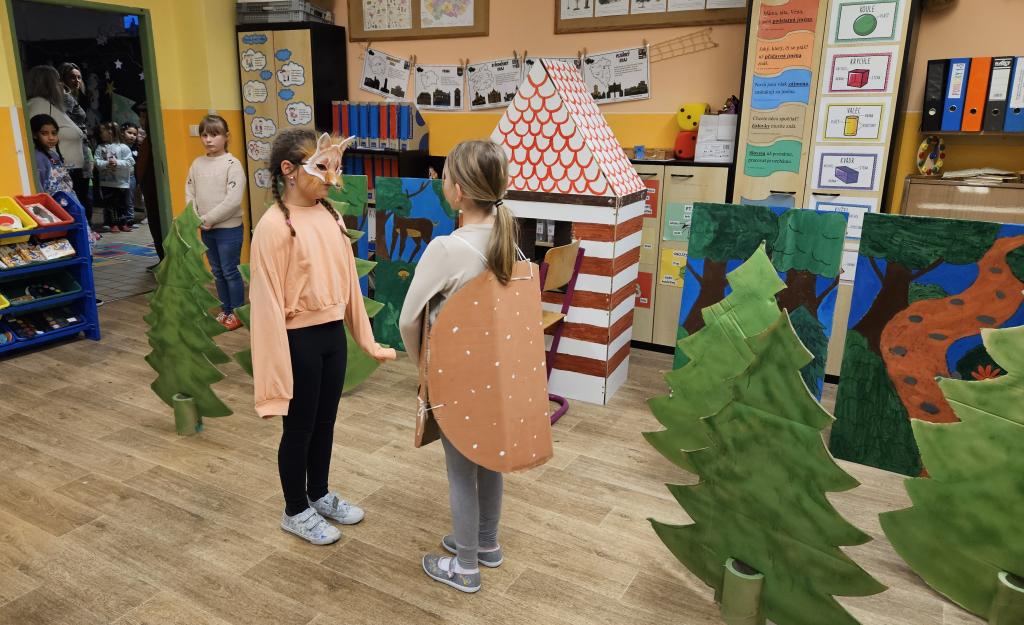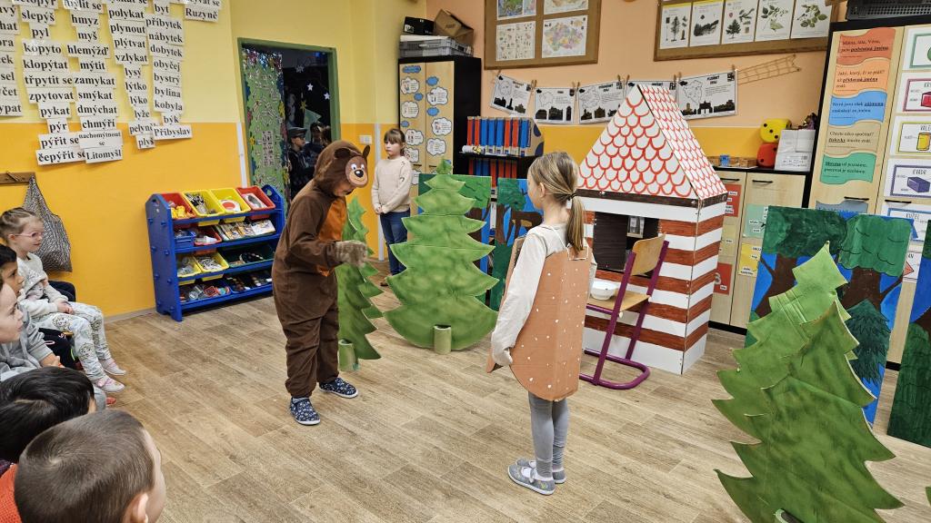 V polovině programu čekalo na děti milé překvapení v podobě divadelního představení. Žáci ze třídy 3. B si připravili pohádku O Koblížkovi, která sklidila velký úspěch a odměnou jim byl nadšený potlesk malých diváků. Po divadle následovala krátká svačinka a poté druhá část „vyučování“, při které děti opět objevovaly, jak může být škola zábavná.