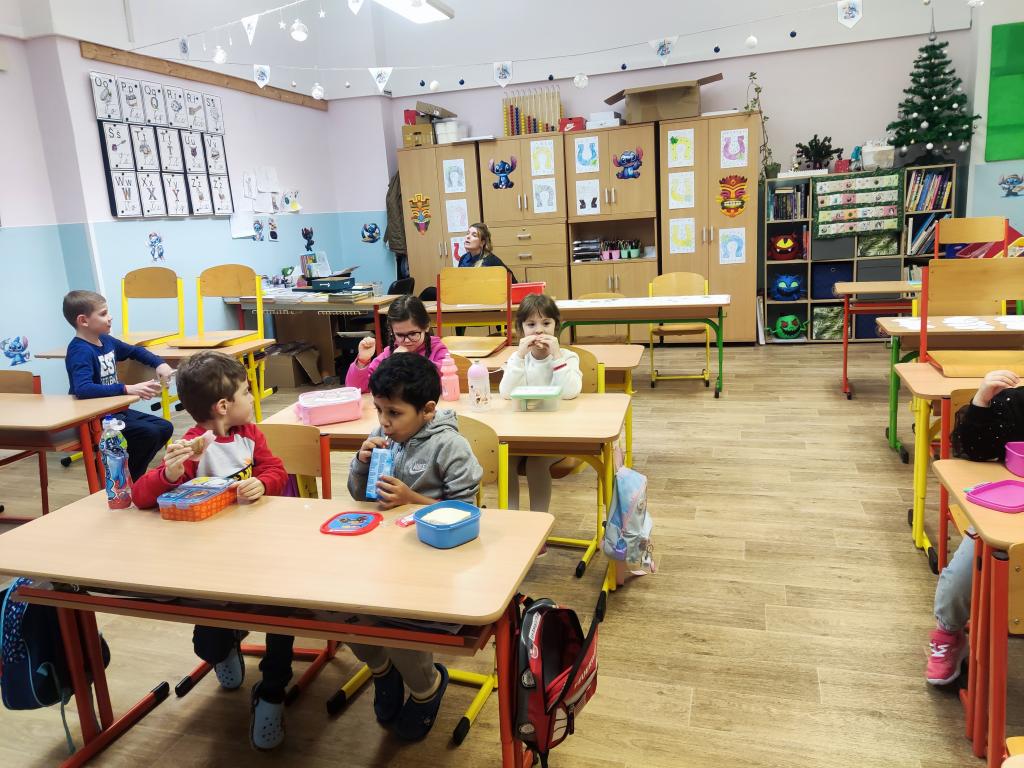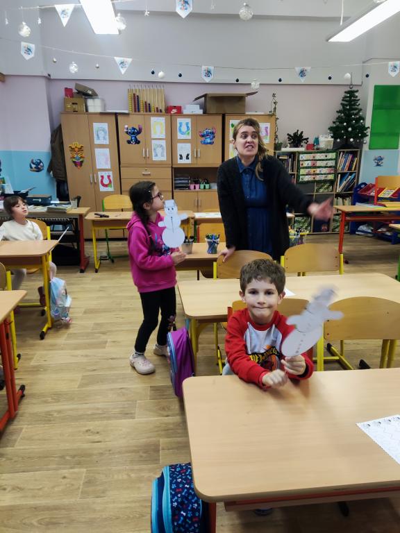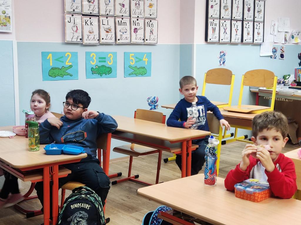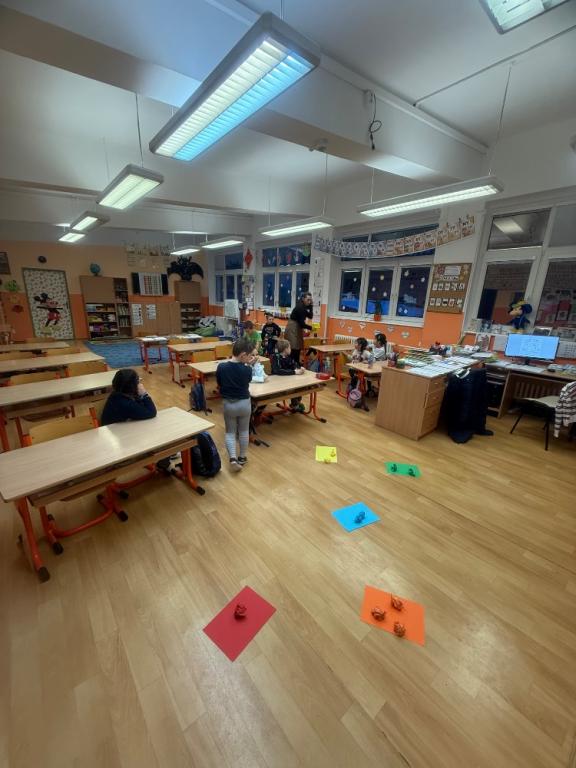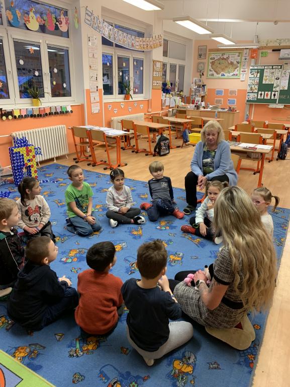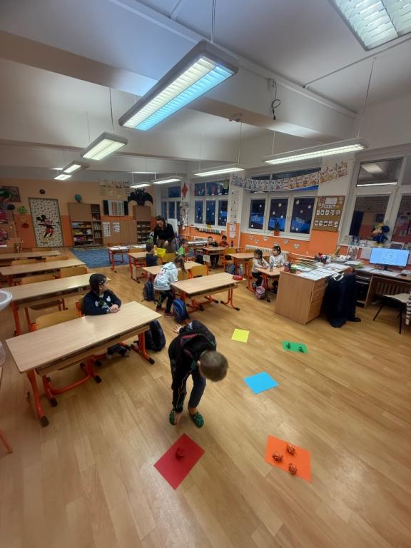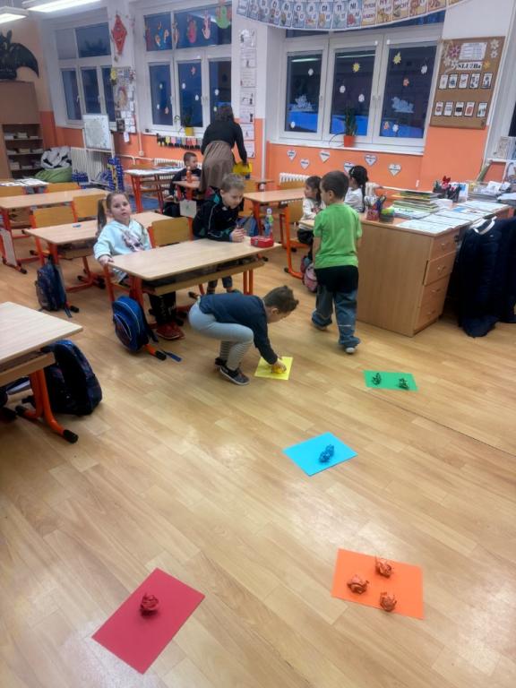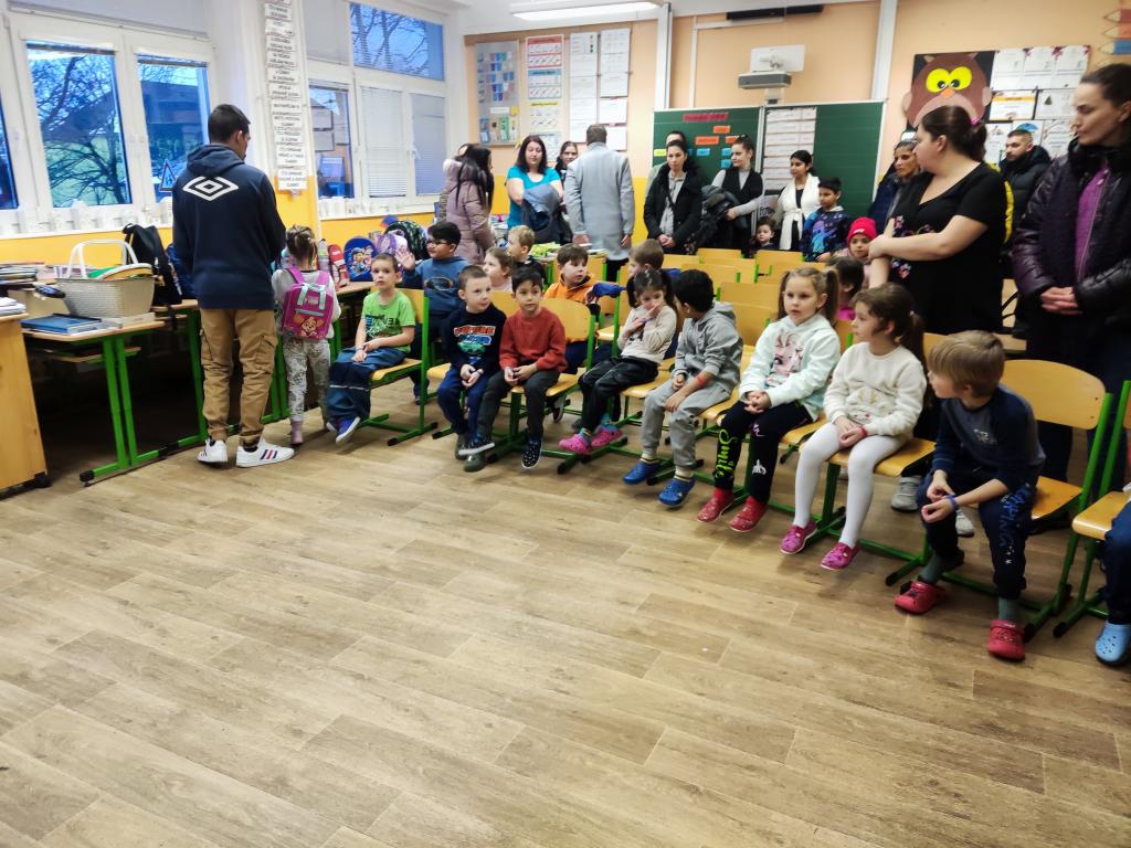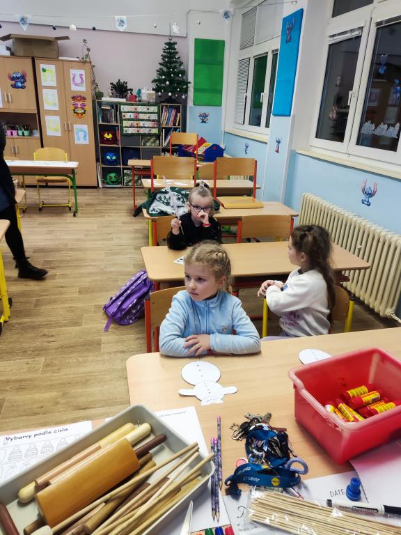 Poté se děti rozdělily do dvou skupin. Každou skupinku si převzaly tři paní učitelky, které s nimi pracovaly ve třídách. Děti si zábavnou formou vyzkoušely jednoduché úkoly podobné těm, se kterými se setkají v první třídě. Nechyběly hry, tvoření ani drobné procvičování dovedností, vše hravou a nenásilnou formou.
