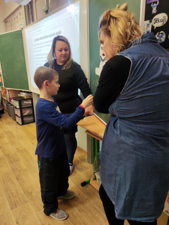 Rodičům byly po celou dobu k dispozici paní učitelky, které ochotně odpovídaly na všechny dotazy a poskytovaly informace o výuce i chodu školy. Na interaktivní tabuli zároveň běžela prezentace plná fotografií z různých školních akcí, aby si rodiče mohli udělat představu o pestrém životě na naší škole.