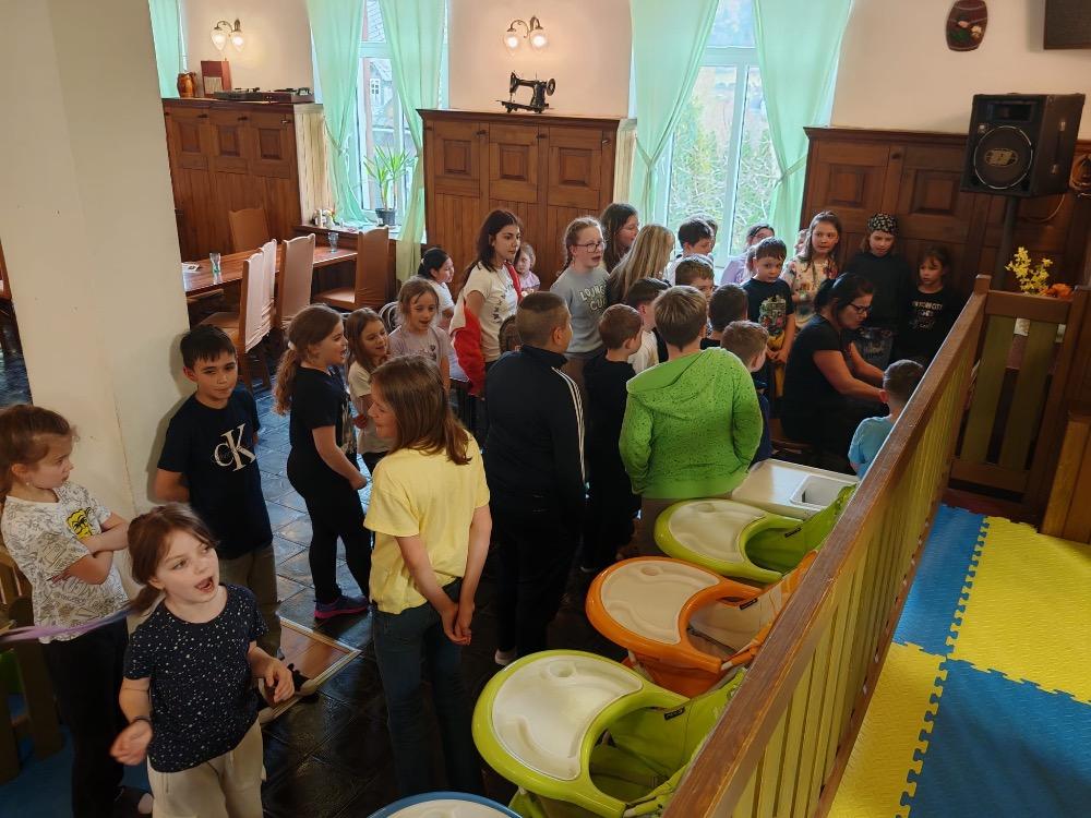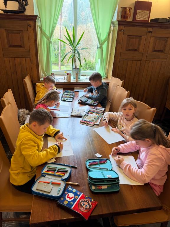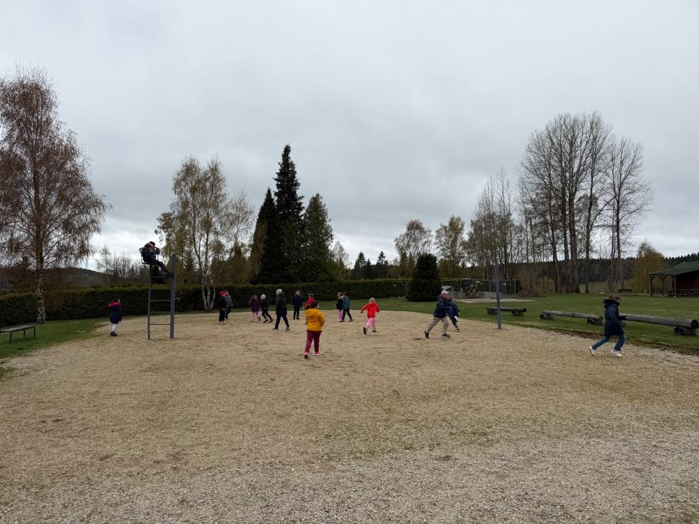 Dopoledne jsme se před obědem vydali na procházku po okolí, během které děti poznávaly místní přírodu a společně si užily zastávku na dětském hřišti. Po návratu nás však překvapilo nepříznivé počasí, a tak jsme odpolední program přesunuli dovnitř.