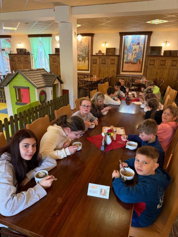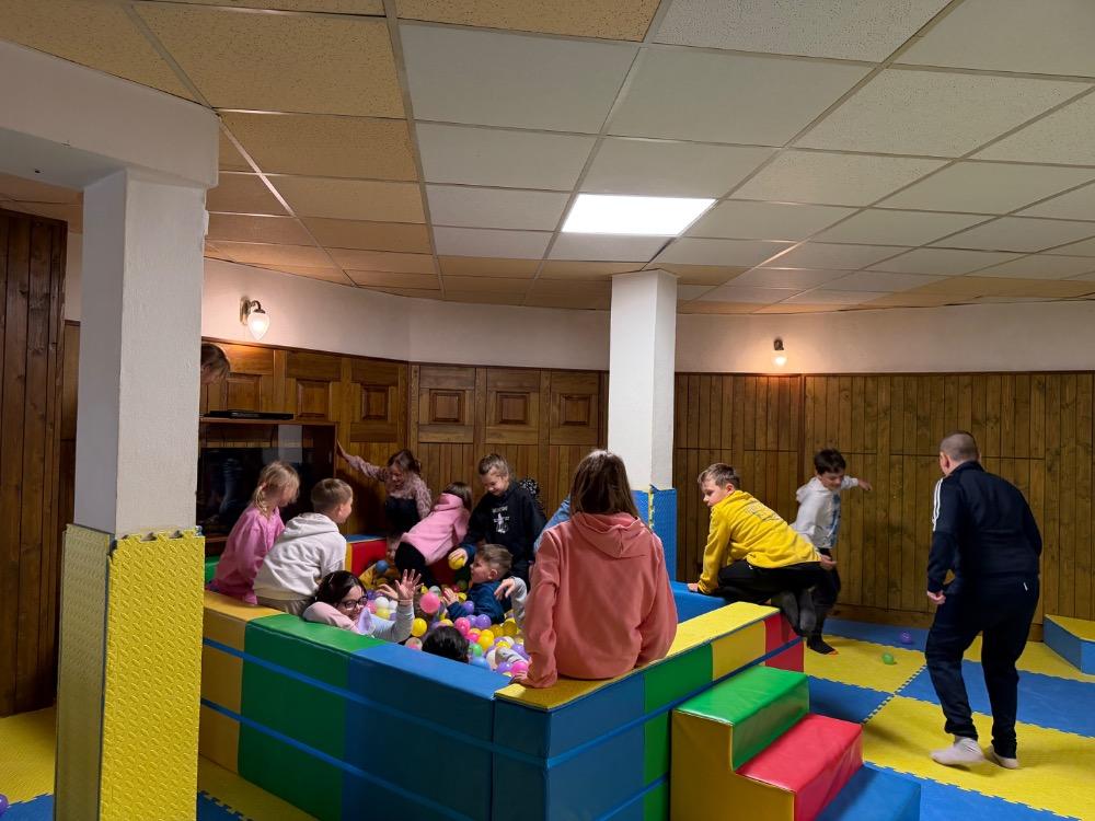 Po týmové práci jsme si ještě užili čas v místní herničce a před večeří jsme si společně zazpívali, což krásně zakončilo první den našeho pobytu.