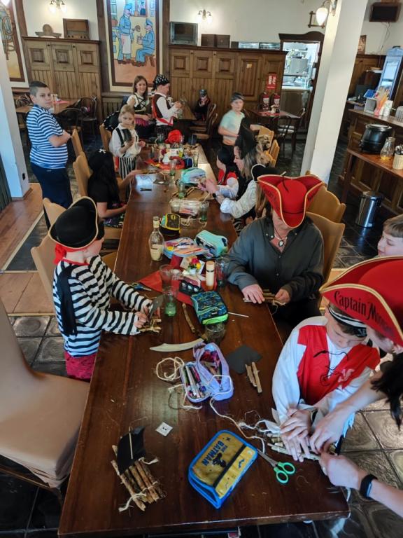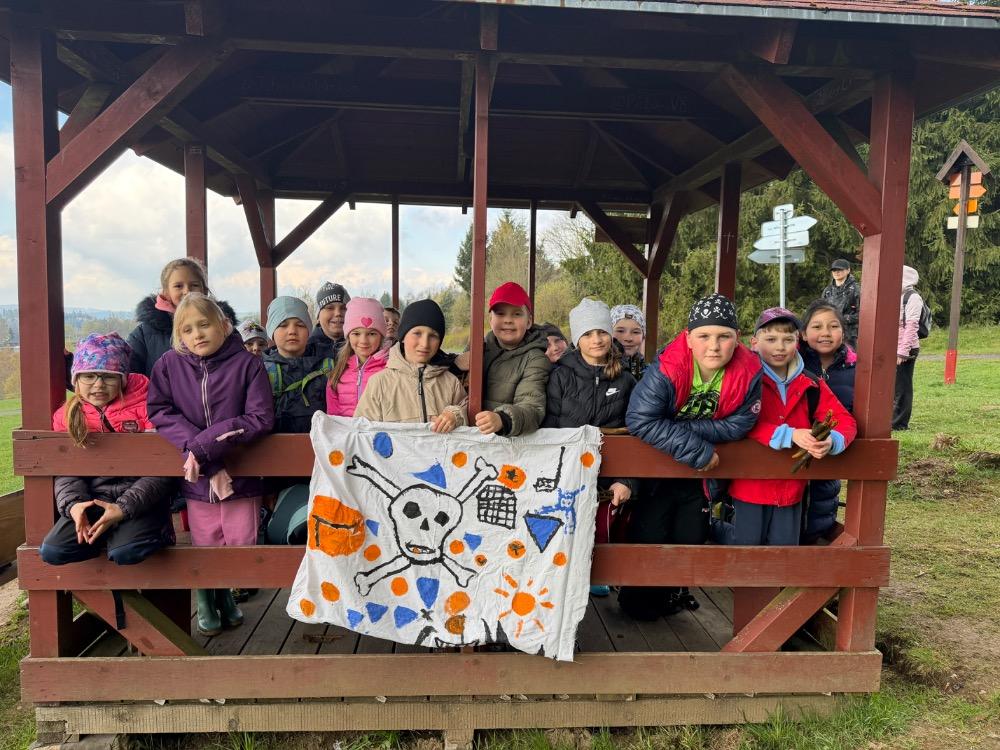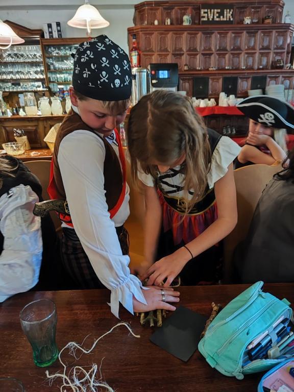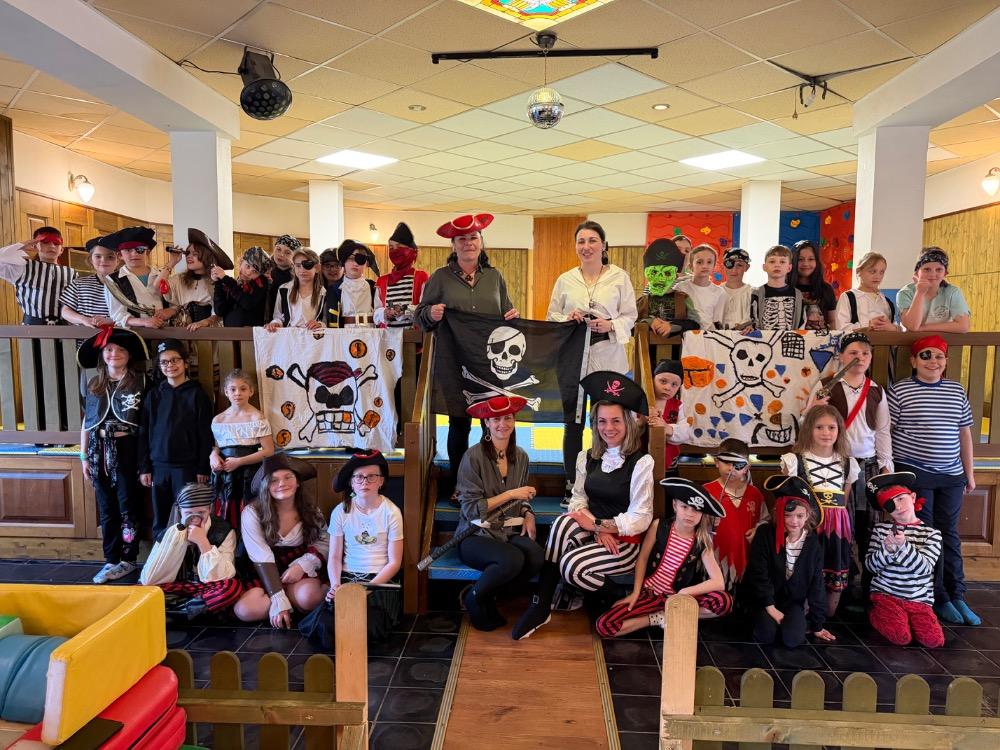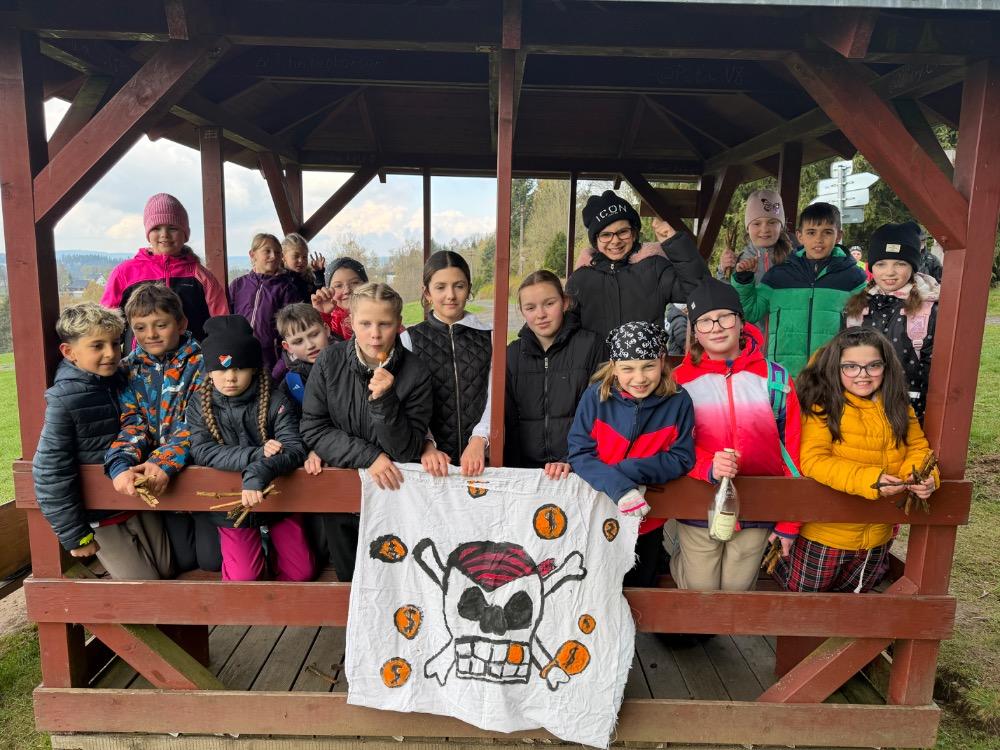Jakmile se opět ukázalo sluníčko, přesunuli jsme se ven a společně si zatancovali. Během dne si děti také nacvičily své pirátské pokřiky a začaly trénovat společný pirátský tanec.