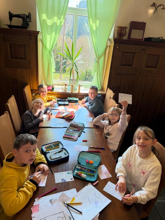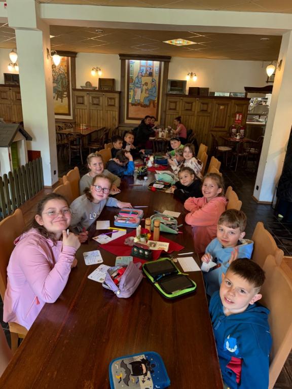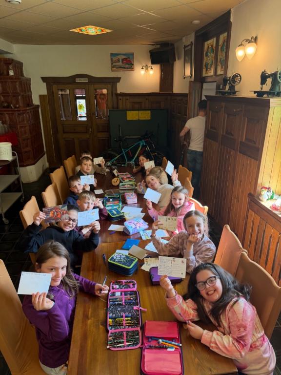 Dopoledne jsme věnovali také klidnější aktivitě – děti psaly dopisy rodičům a procvičovaly si čtení i psaní.
