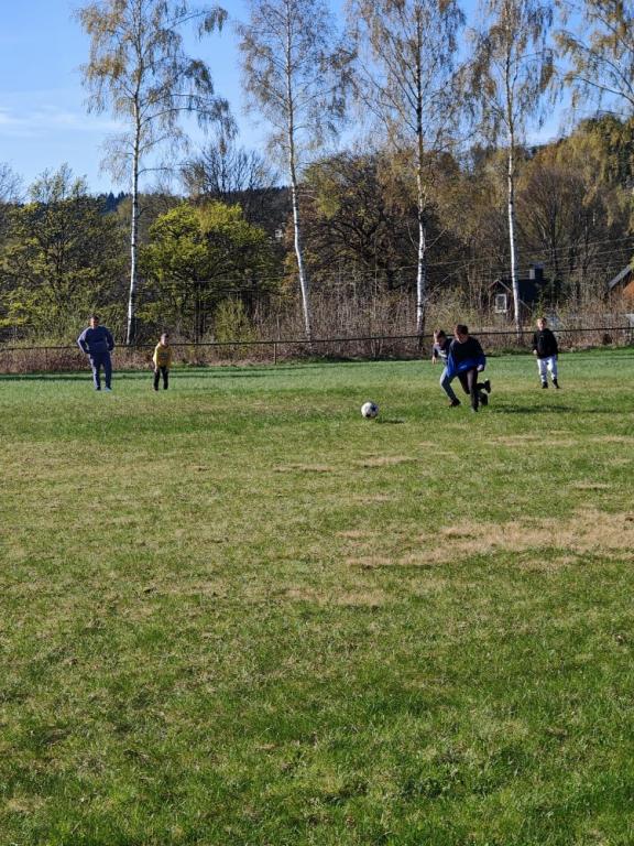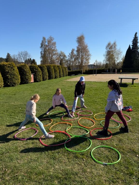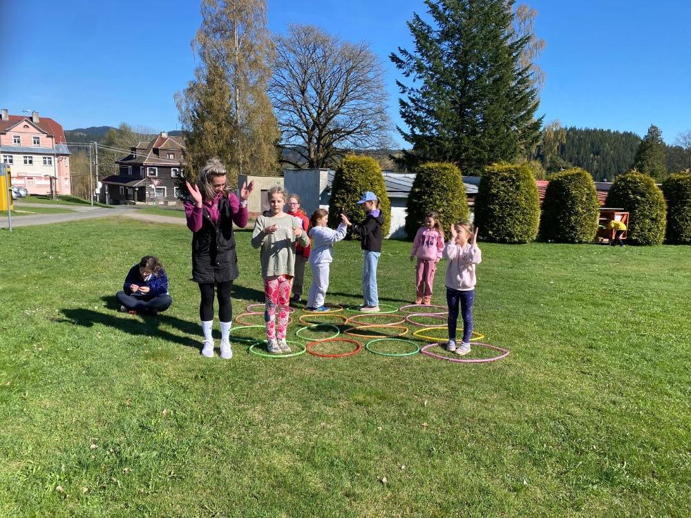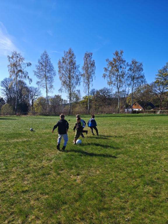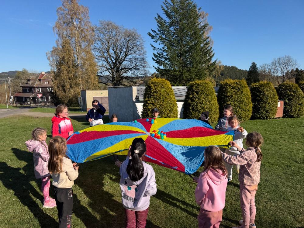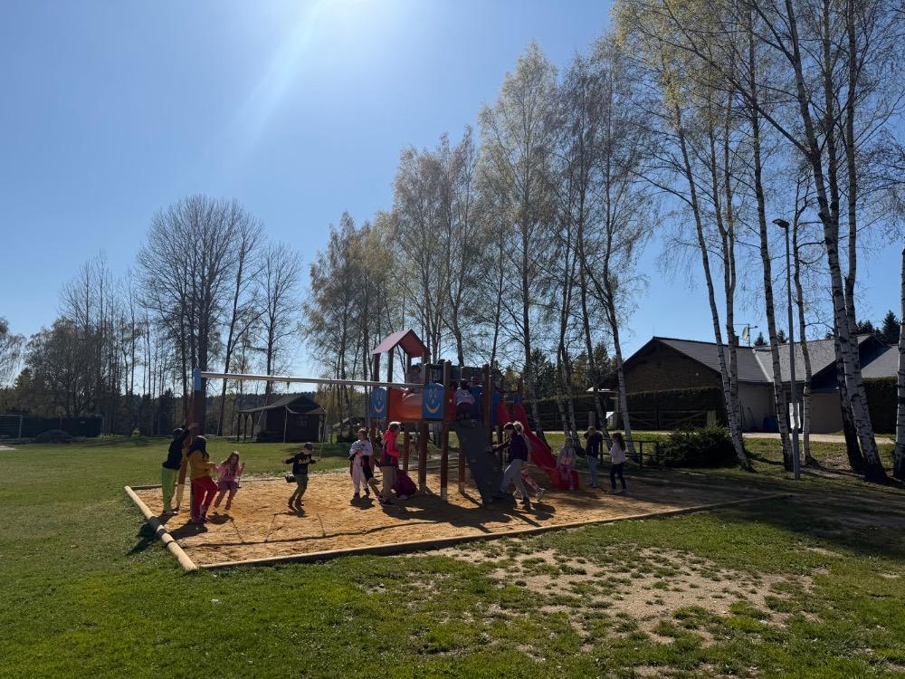 Po vydatném obědě následoval zasloužený odpočinek a poté jsme se opět rozdělili do dvou skupin. Jedna vyrazila na fotbalové hřiště, kde si naši sportovci konečně mohli pořádně zakopat. Druhá skupina zamířila na dětské hřiště, kde jsme si užili spoustu legrace – hráli jsme různé hry, cvičili společný taneček a nechyběl ani volný čas na hraní.