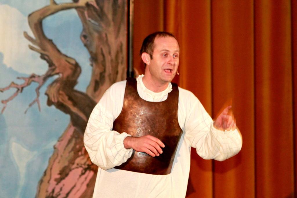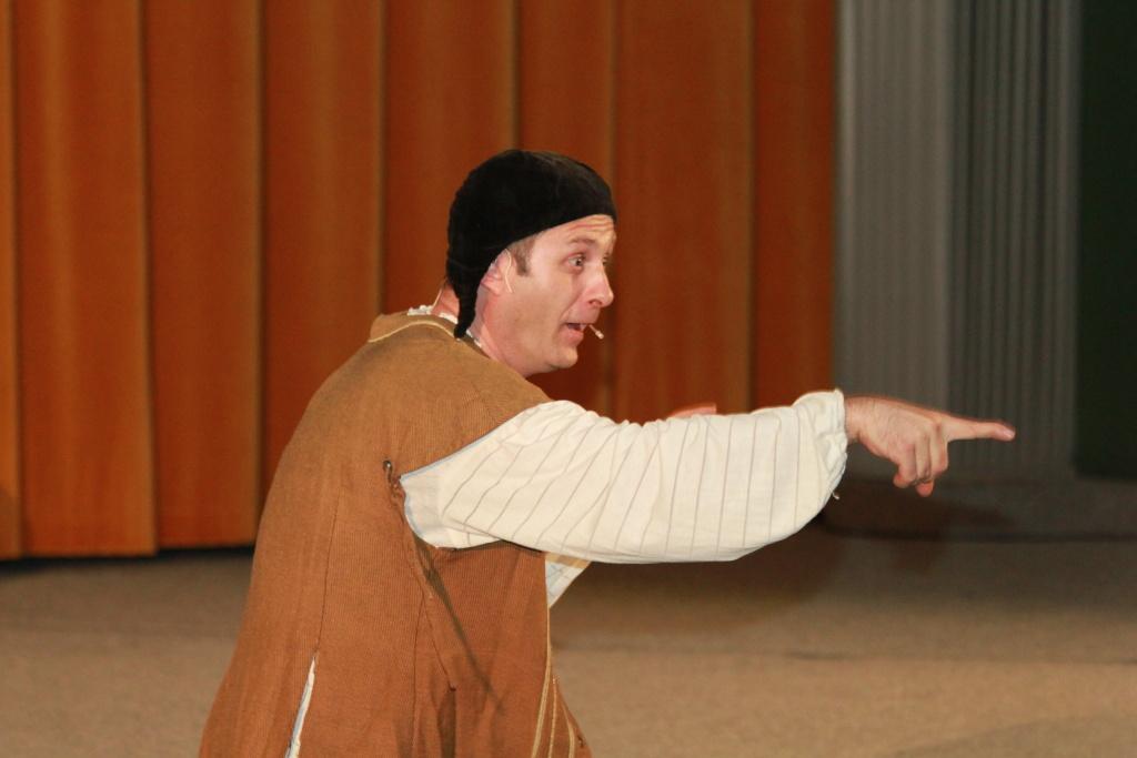 Herec si s naprostým přehledem dokázal zjednat kázeň u pubertálního osazenstva hlediště a drtivou většinu přítomných zaujal naprosto osobitým projevem, gestikulací, mimikou a využitím nejrůznějších funkcí svých mluvidel. Často také využíval prostředku vystoupení z role či narážek na naprosto soudobé dění a zvyky. Přesto se domnívám, že navzdory určité naprosto únosné dávky podbízivosti si žáci budou určitě pamatovat, kdy žil William Shakespeare, jak zněla stará čeština, co bylo dominatním motivem divadla v renesanci či že název nejstarší dochované staročeské hry je Mastičkář.